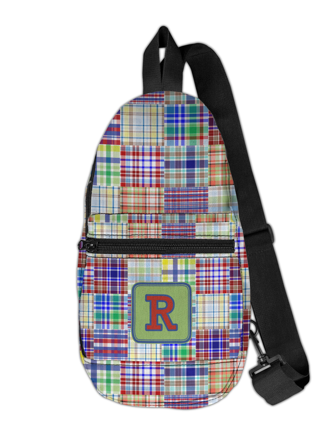 A square label is the perfect place for your initial, to make this collection of plaids truly you.