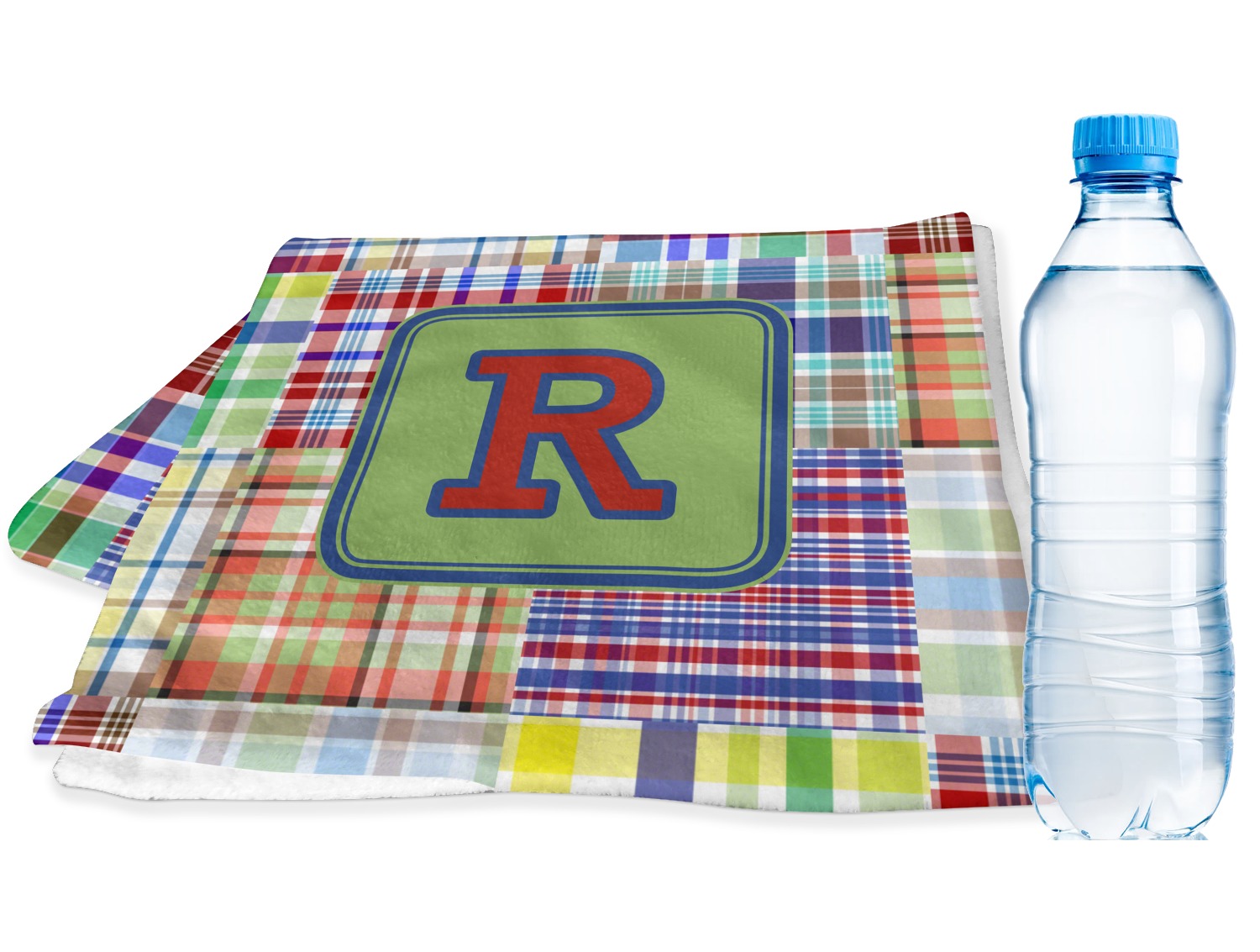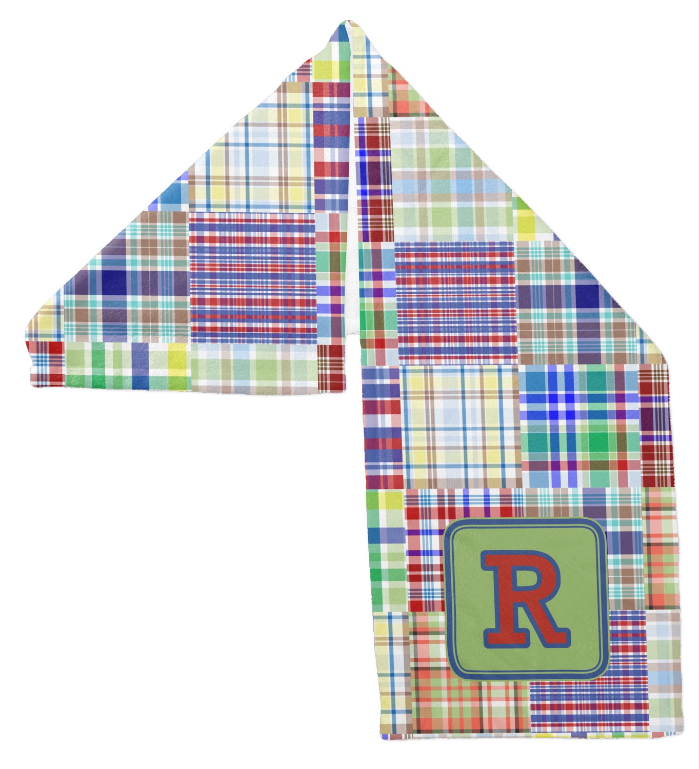 A square label is the perfect place for your initial, to make this collection of plaids truly you.
