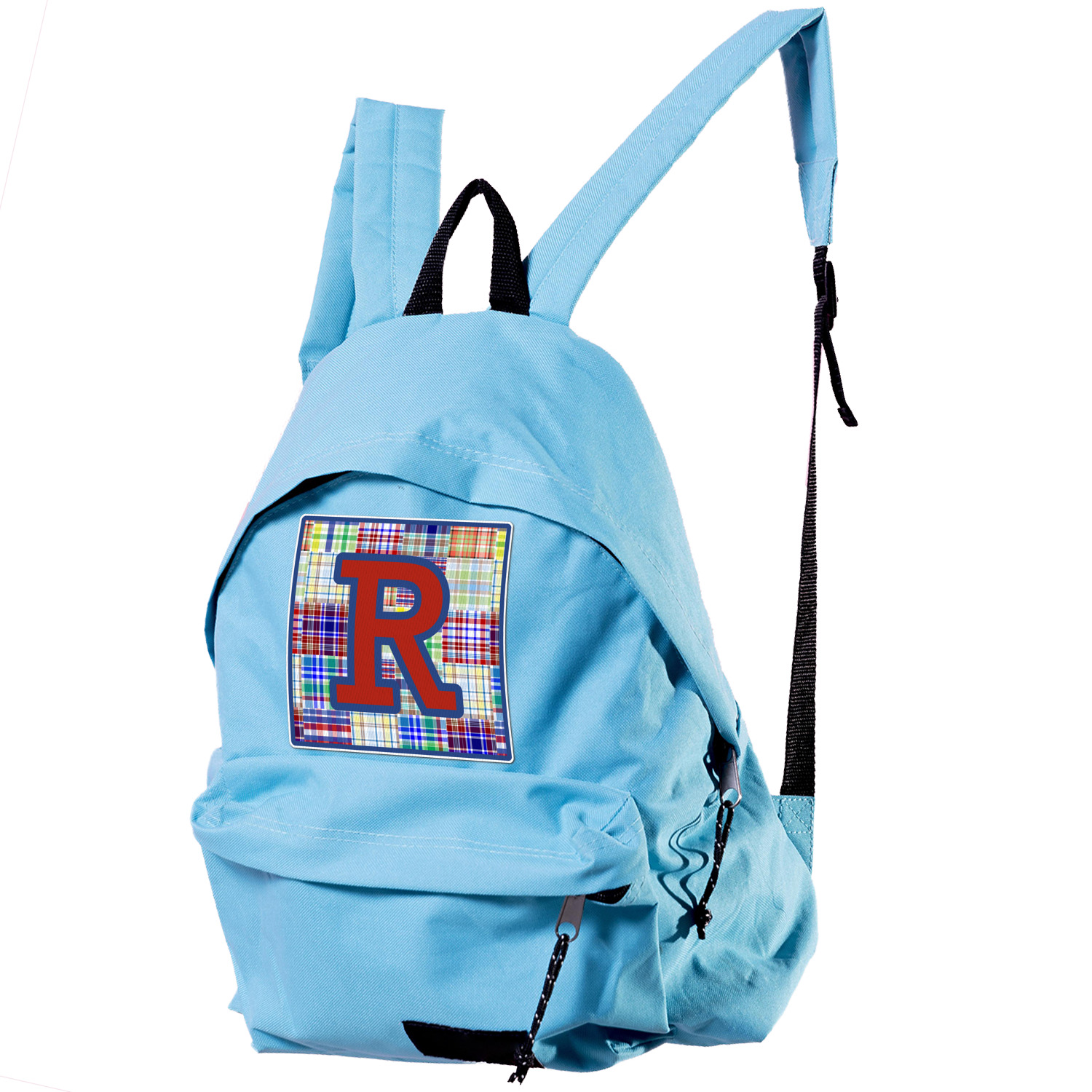 A square label is the perfect place for your initial, to make this collection of plaids truly you.