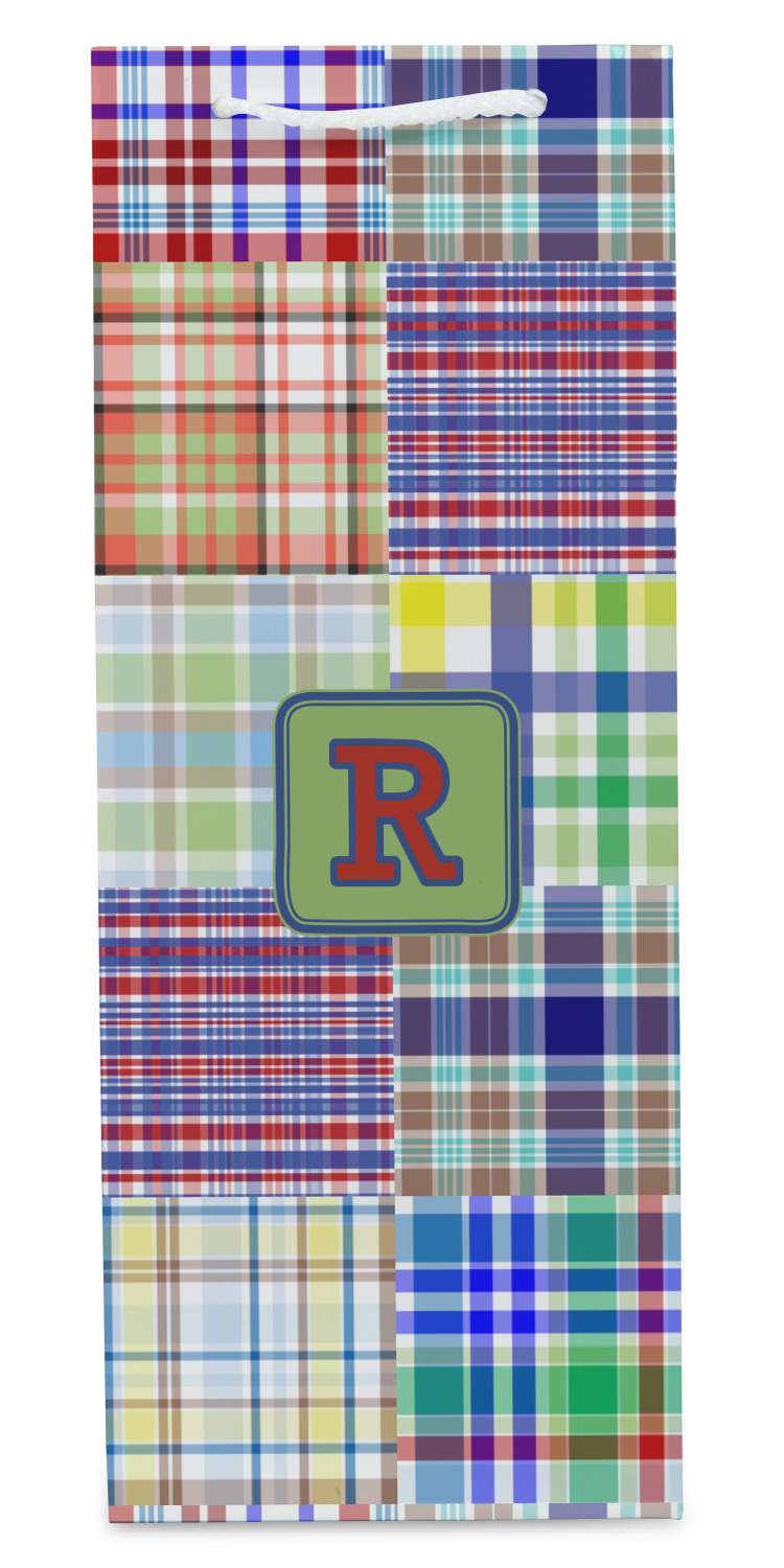 A square label is the perfect place for your initial, to make this collection of plaids truly you.