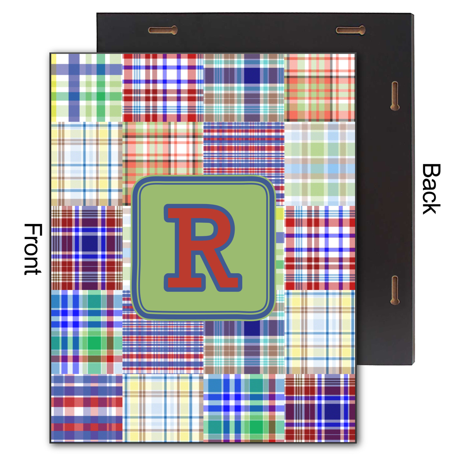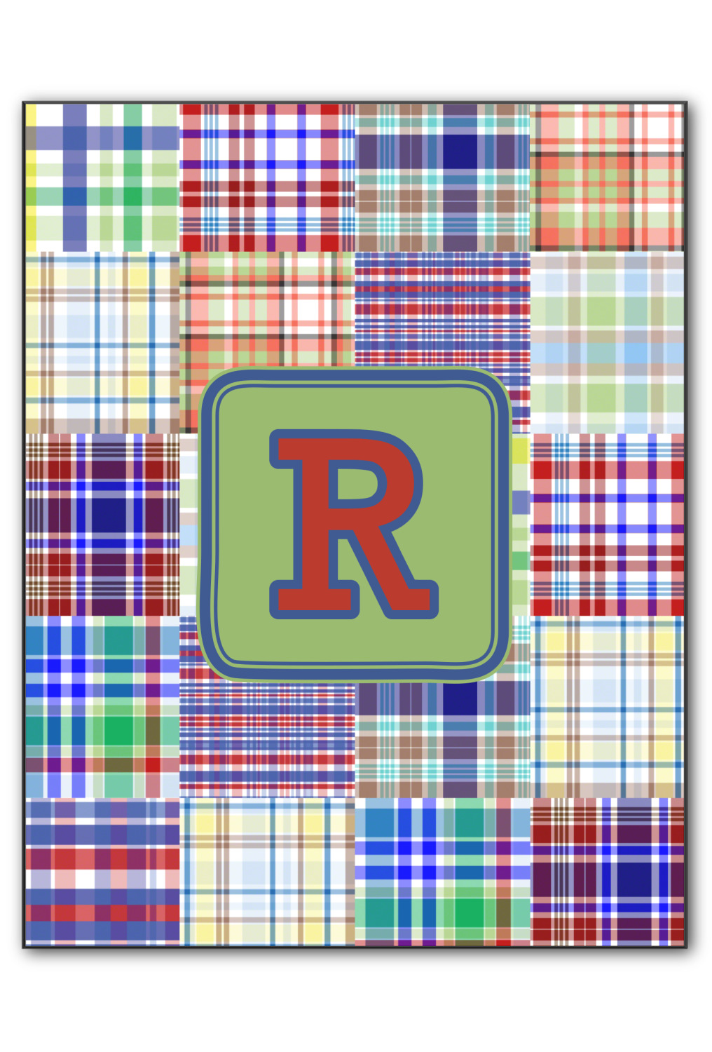 A square label is the perfect place for your initial, to make this collection of plaids truly you.