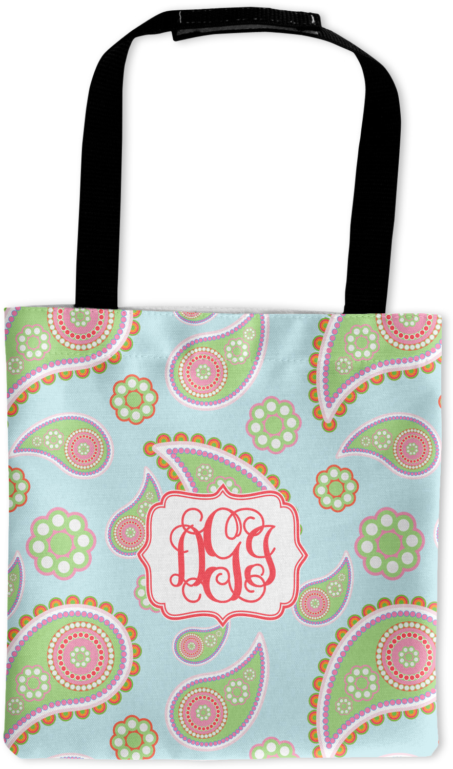This design with paisley in green and coral on a blue background creates a nice balance between feminine and masculine colors.