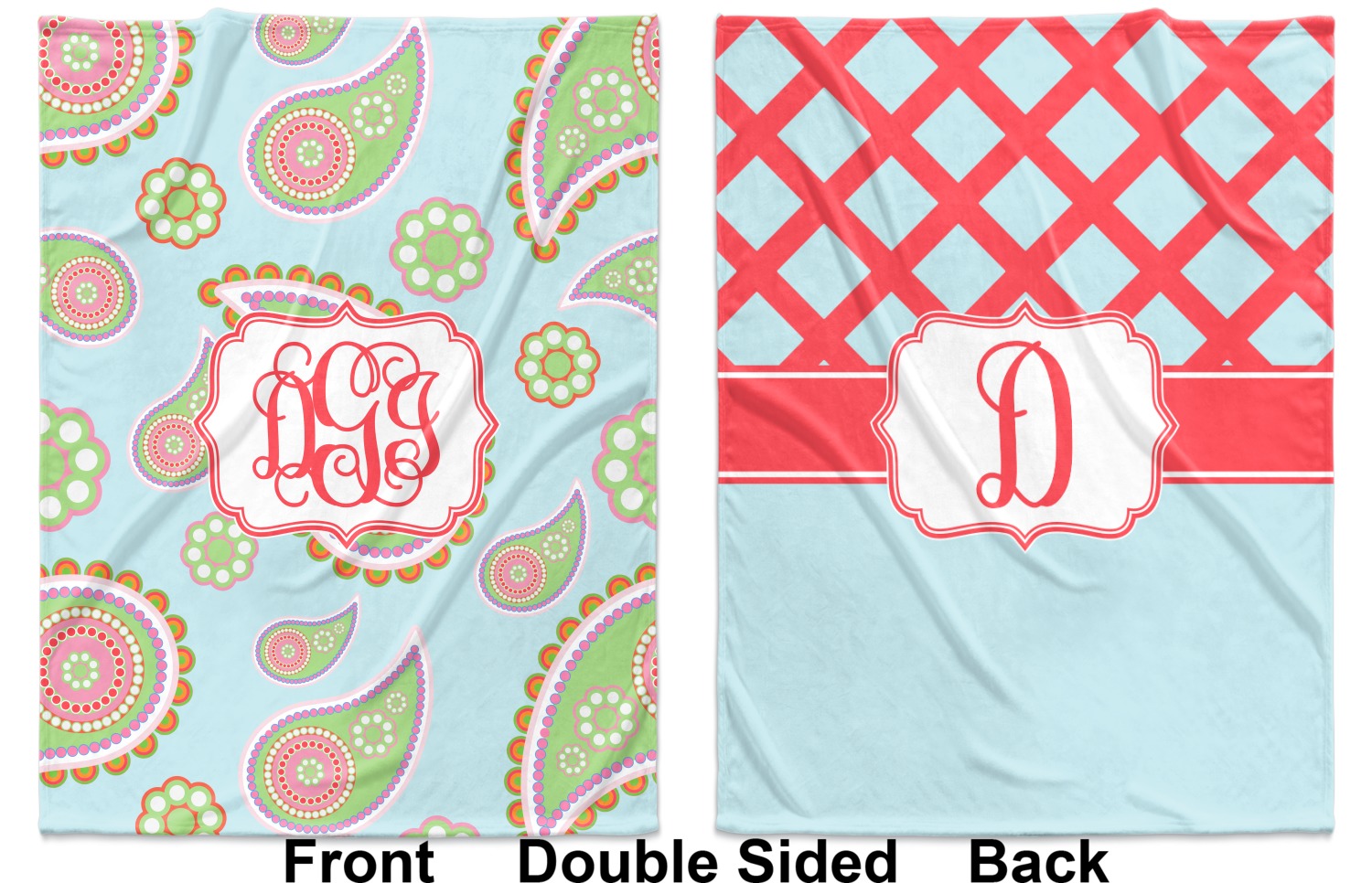 Crafted from a Minky-like fabric, these custom baby blankets are plush and gentle for your babys delicate skin. They measure approximately 30 by 40 inches, making these soft baby blankets the perfect size for your babys crib or stroller. We provide you with the option of customizing your monogrammed baby blanket on only one side, or both sides, with different or coordinating designs. If you choose to only customize one side of the blanket, the back will be a classy, white color, that will help the patterns on your design stand out. We also offer you the option of customizing your baby blanket horizontally or vertically, depending on your creative vision!