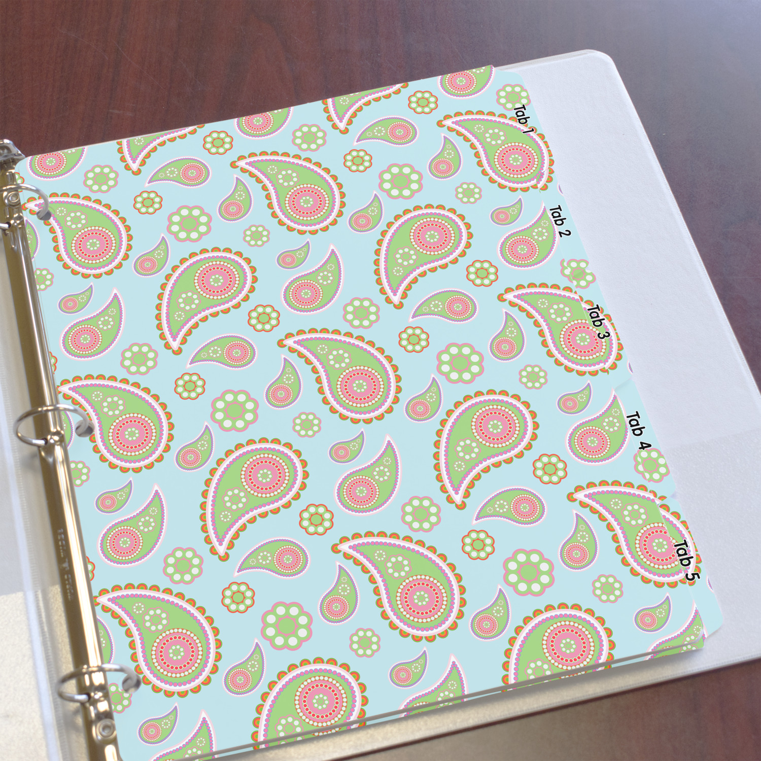 Whether you use binders at school or at work, we have designs to suit all of them. Available in 5 or 6 tab sets, you are sure to find a set to suit your needs. The back of each one is white and can be used to take notes, write vital information on, etc.