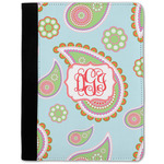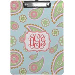 This design with paisley in green and coral on a blue background creates a nice balance between feminine and masculine colors.