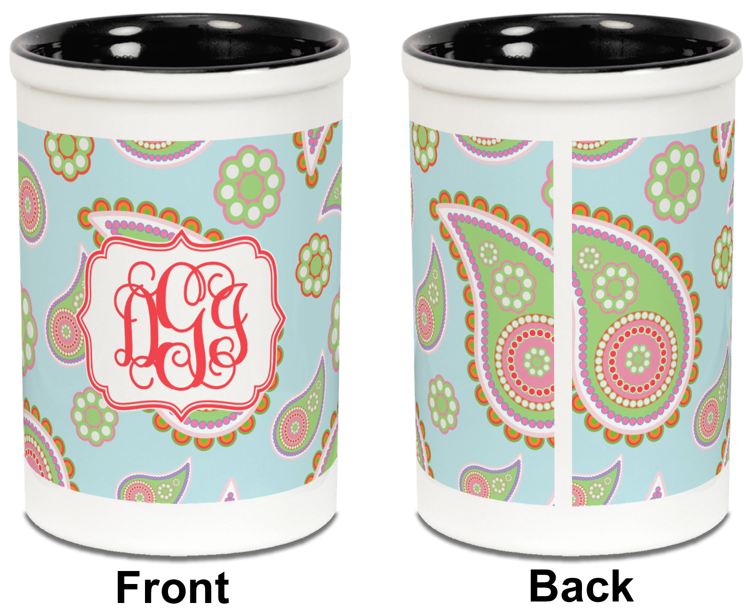 Need help with keeping the workspace clean and tidy? Try using our customizable pencil holders! They're great desk accents for the office, kids desk, or even vanity mirror. Our custom pencil holders are ideal for holding pens, pencils, and even brushes to keep your area from any clutters. The best part about our custom desk pen organizers is the two-toned look! Choose one from either our black or blue interior and customize the outside of the pencil holder with your own personalized design! Use our online design studio to create logos, monograms, or even print a favorite photo to display on the cup holder! Create a cute pencil holder for the kid's desk, or add a cool design to hold any brushes. The options are endless!