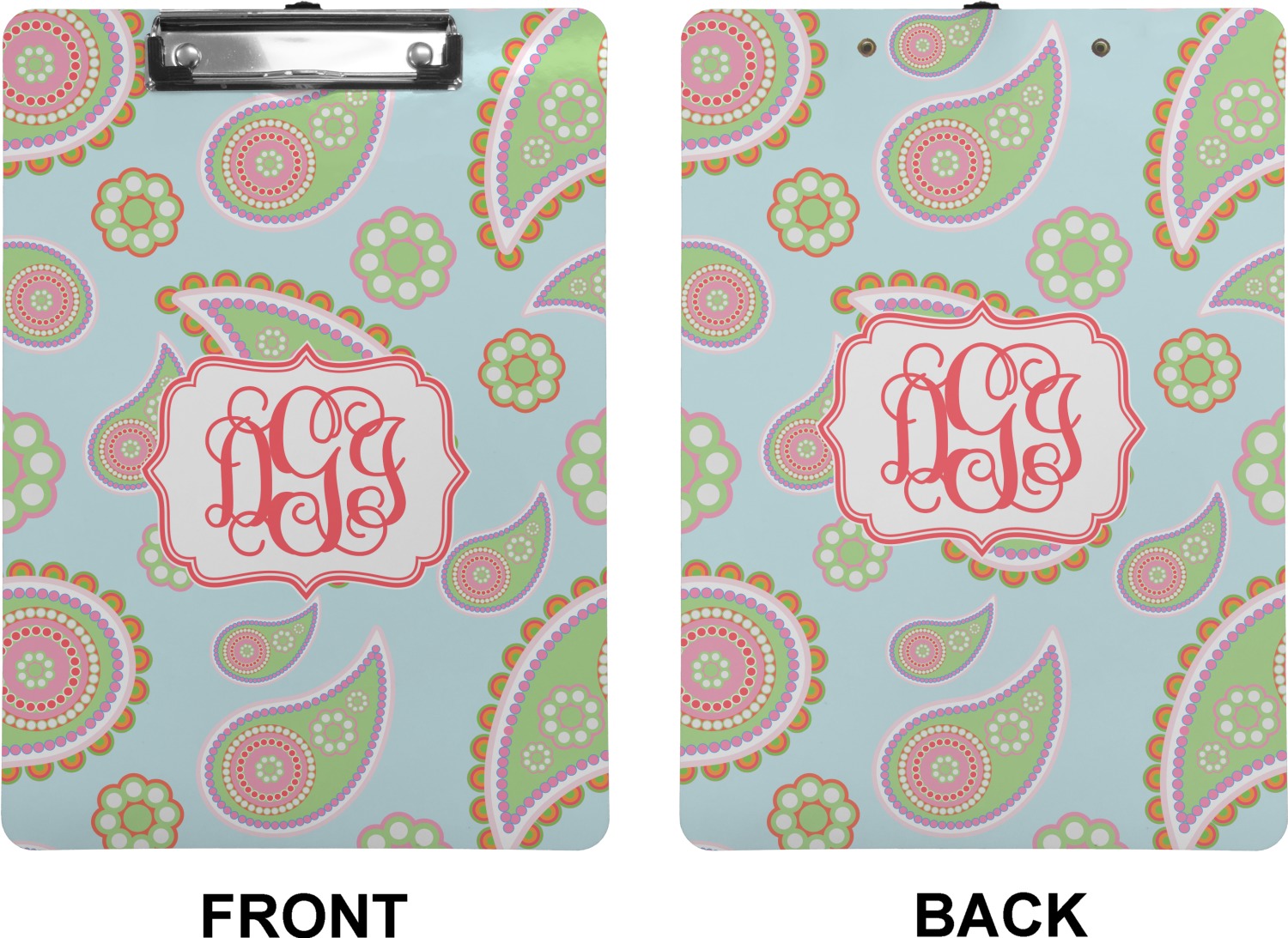 These custom clipboards are made from a strong hardboard and are coated with a glossy finish that accentuates the colors of your design. Alongside a retractable hook at its top, these decorative clipboards also feature sturdy clips to secure several sheets of paper. We sell these clipboards in two separate sizes. Our letter size measures at 12.5" L x 9" W, while our legal clipboard is approximately 15.5" L x 9" W. On both models, your personalization is printed on both sides of this clipboard and can be customized individually.
