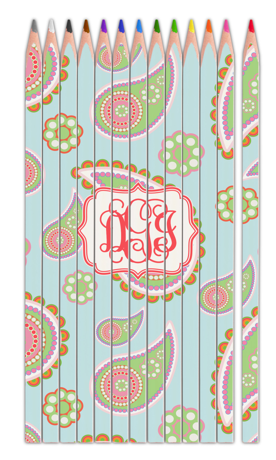The image / design that you can put on these custom colored pencils is only limited by your imagination. You can upload a photo or logo and then add some text, or you can customize one of our designs and change the patterns, colors, personalization - i.e. name, text, monogram, initial etc.