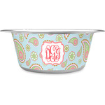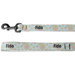This design with paisley in green and coral on a blue background creates a nice balance between feminine and masculine colors.