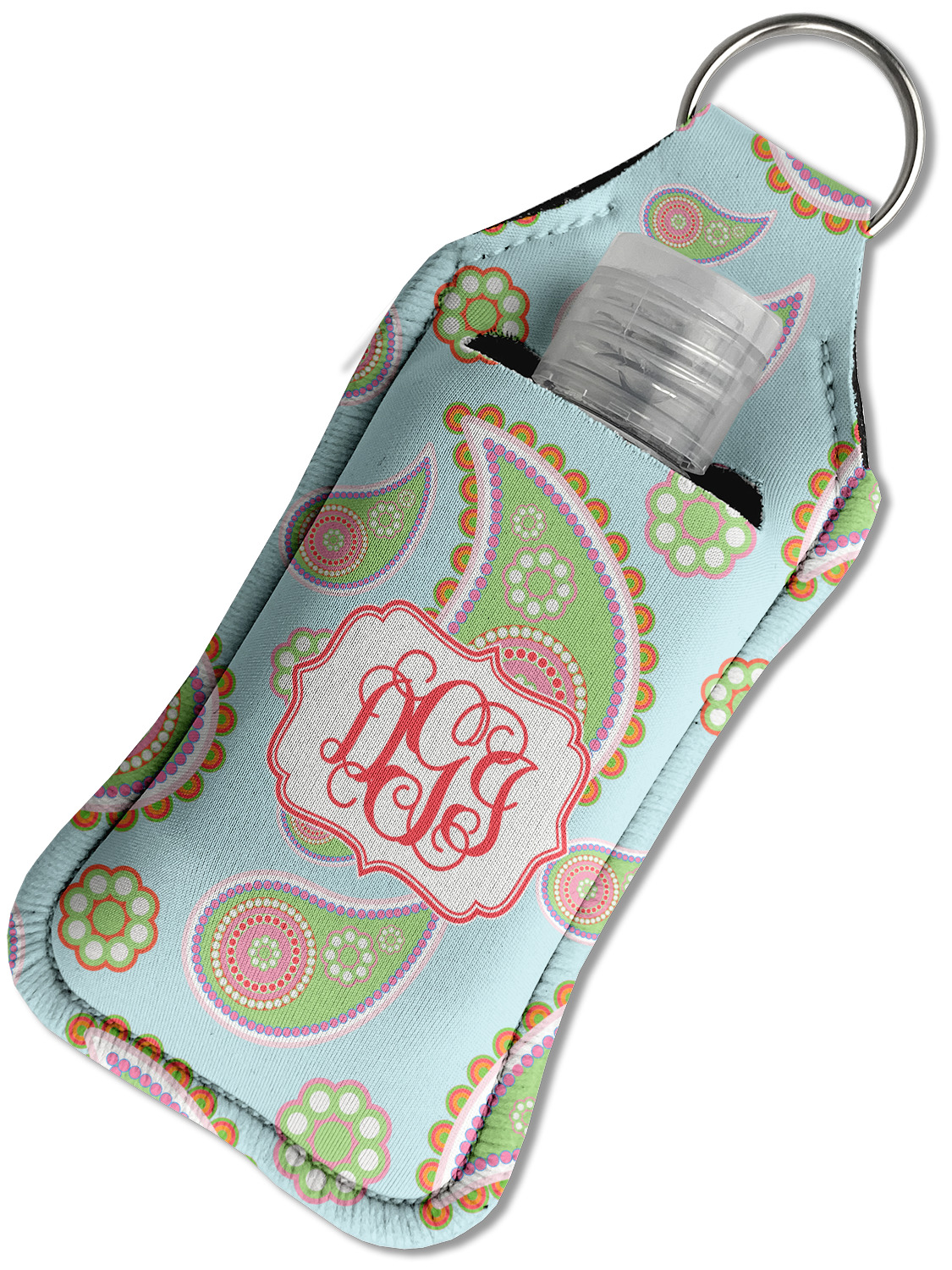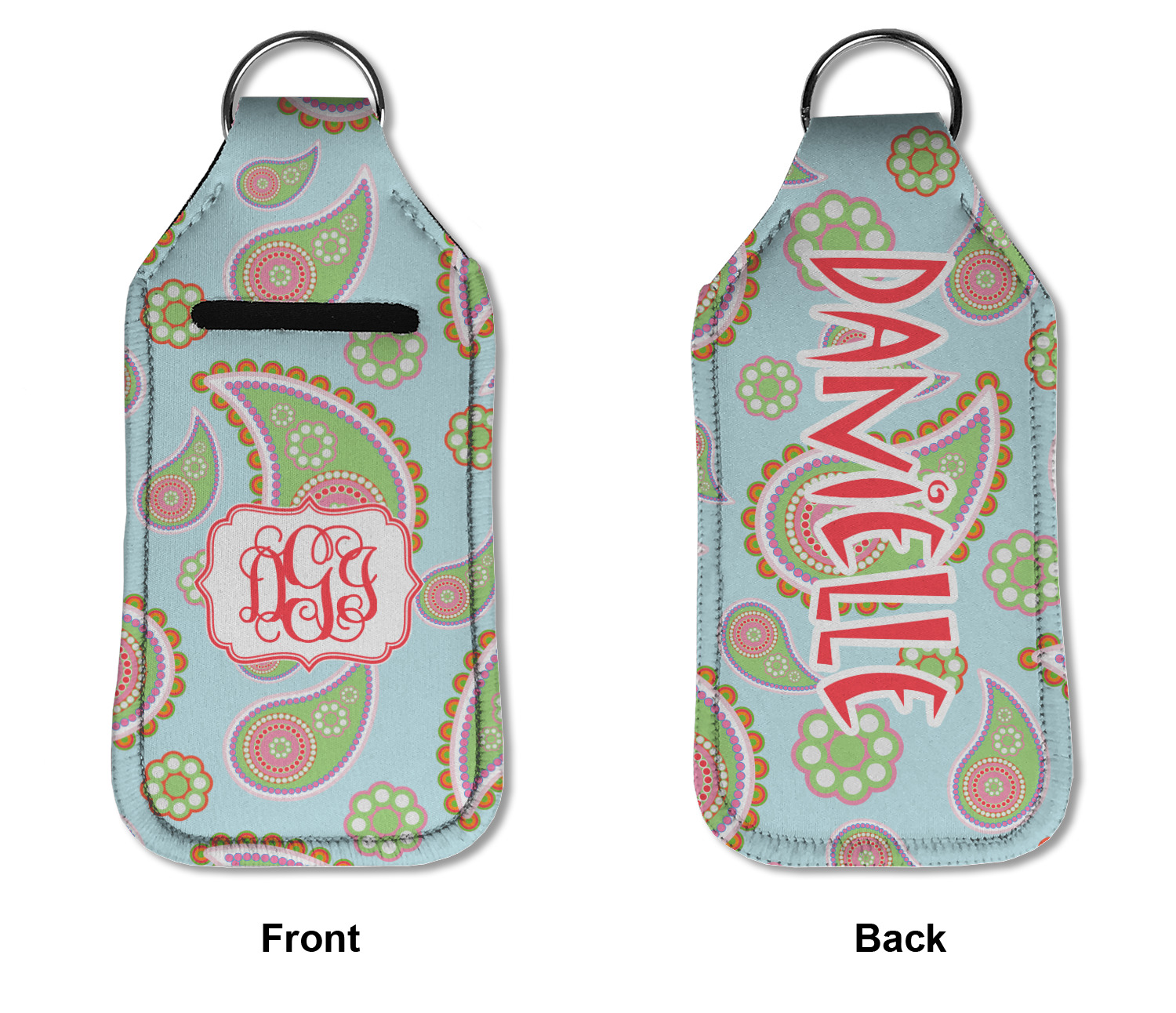 Each hand sanitizer holder comes with its own empty travel-sized, refillable hand sanitizer sure to fit snug in your customized sanitizer case! Our hand sanitizer cases are a durable, yet soft neoprene material sure to last any daily activities or travel agenda. Customize and personalize a hand sanitizer bottle holder with one of our two sizes - small (4.25" x 2.25") or large (5.5" x 2.5"). Each travel sanitizer holder comes with a keyring for attachment on bags, keys, or more!