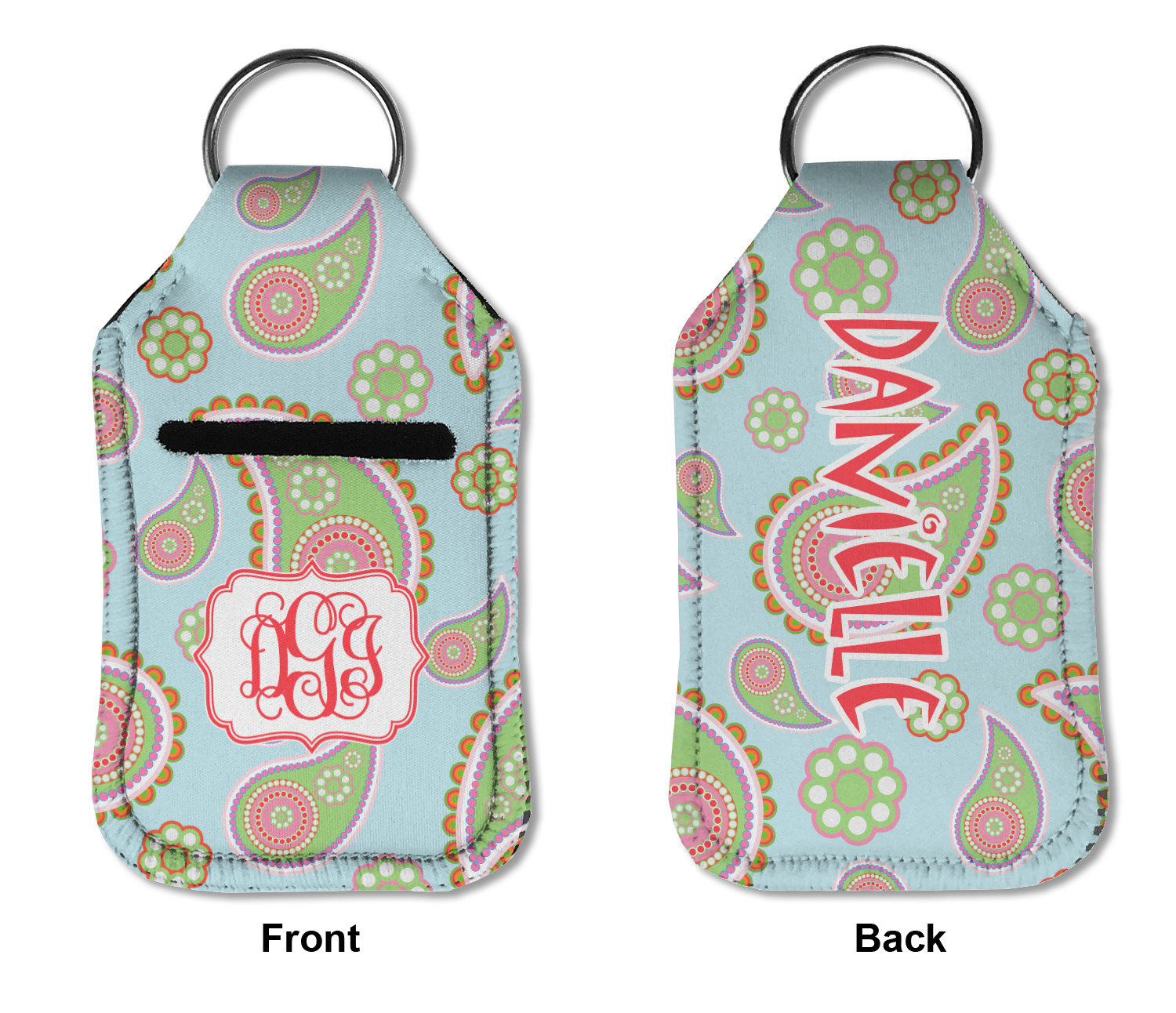 Each hand sanitizer holder comes with its own empty travel-sized, refillable hand sanitizer sure to fit snug in your customized sanitizer case! Our hand sanitizer cases are a durable, yet soft neoprene material sure to last any daily activities or travel agenda. Customize and personalize a hand sanitizer bottle holder with one of our two sizes - small (4.25" x 2.25") or large (5.5" x 2.5"). Each travel sanitizer holder comes with a keyring for attachment on bags, keys, or more!