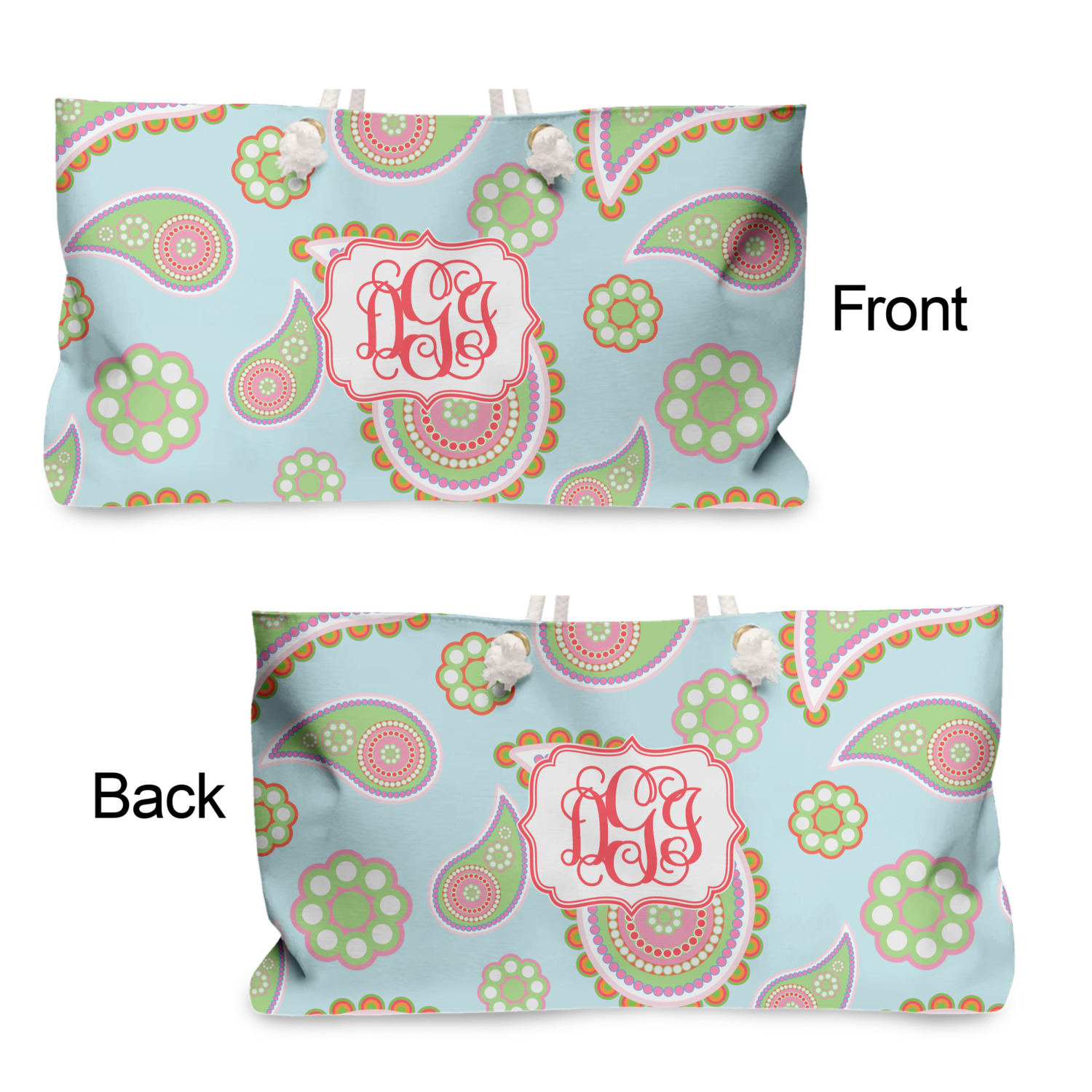 These weekender totes can be customized front and back. The totes are full all over print - so the choice of how background are endless - from beautiful floral or leaf patterns to geometrics or some classic Van Gogh artwork - the possibilities are endless. The totes can also be decorated with photos and logos.