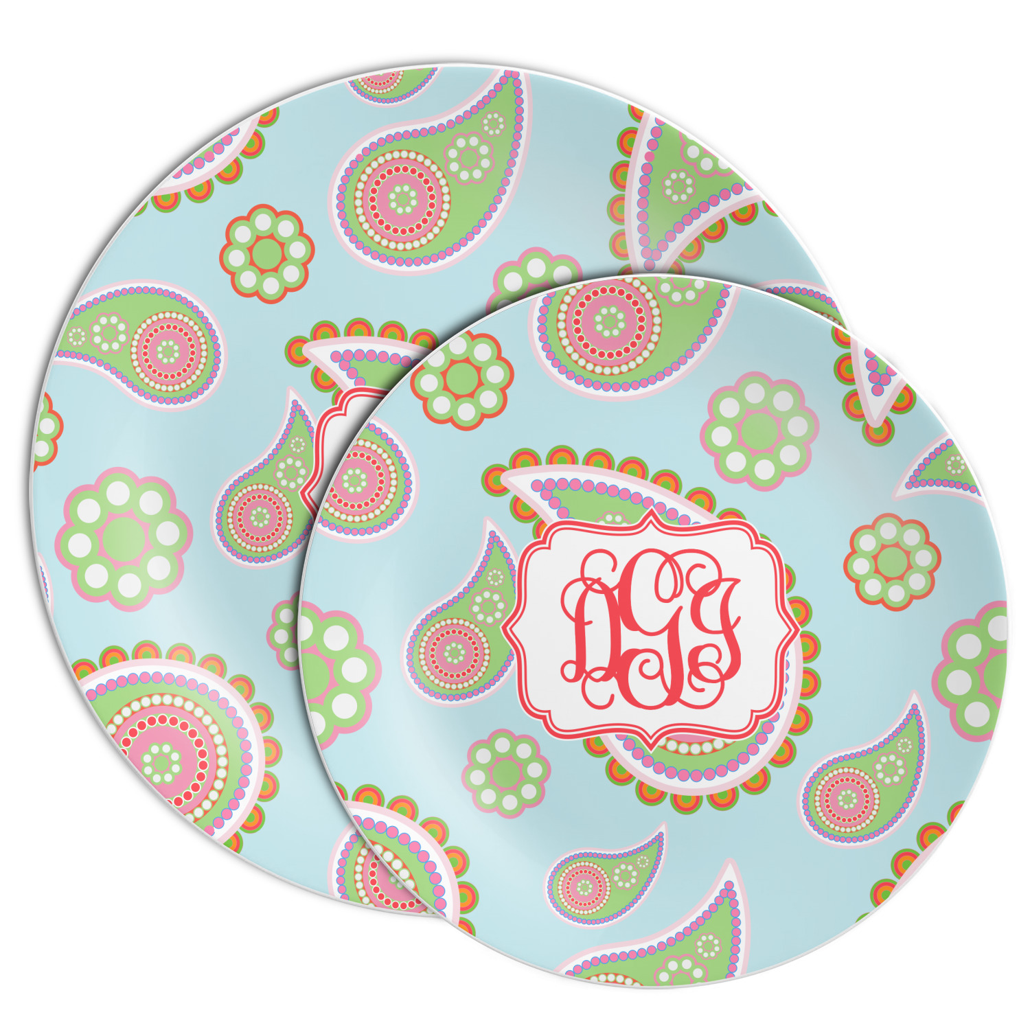 These personalized plates are free of BPA and break resistant, to survive the many drops of daily use. Your customization is displayed across the entire face of the plate, while the back of the plate remains white in color. We offer these plates in two different sizes: 8 inches and 10 inches in diameter.