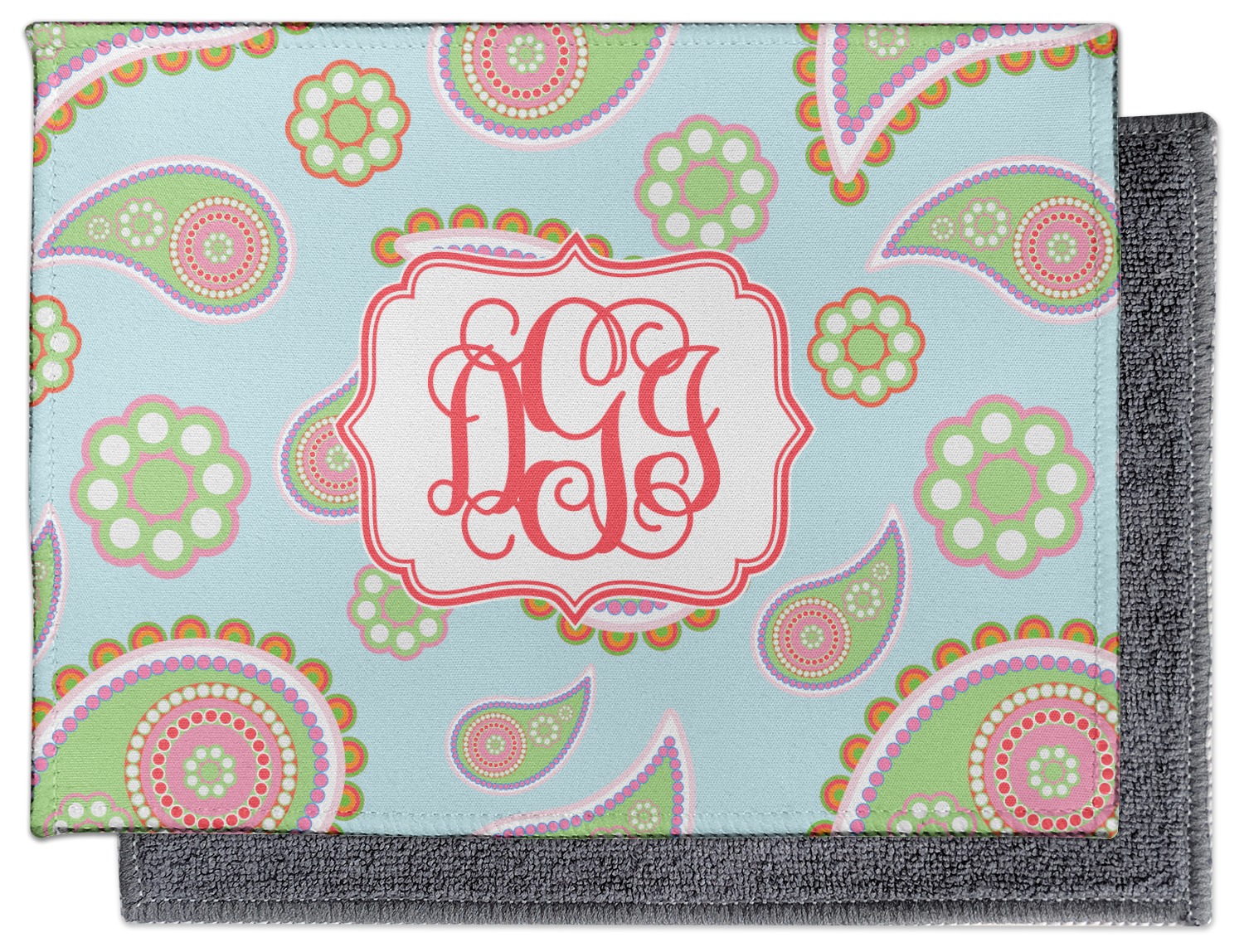 The back of this cleaning cloth is made from a gentle, grey microfiber material, that is masterful at removing smudges, grease, and fingerprints from lenses or electronic screens. The front side of the screen cleaner displays your personalized design in vibrant color. A beautiful stitch lines the edges and secures the microfiber to the polyester top. We provide you with the option of customizing this screen horizontally or vertically, depending on your preferences.