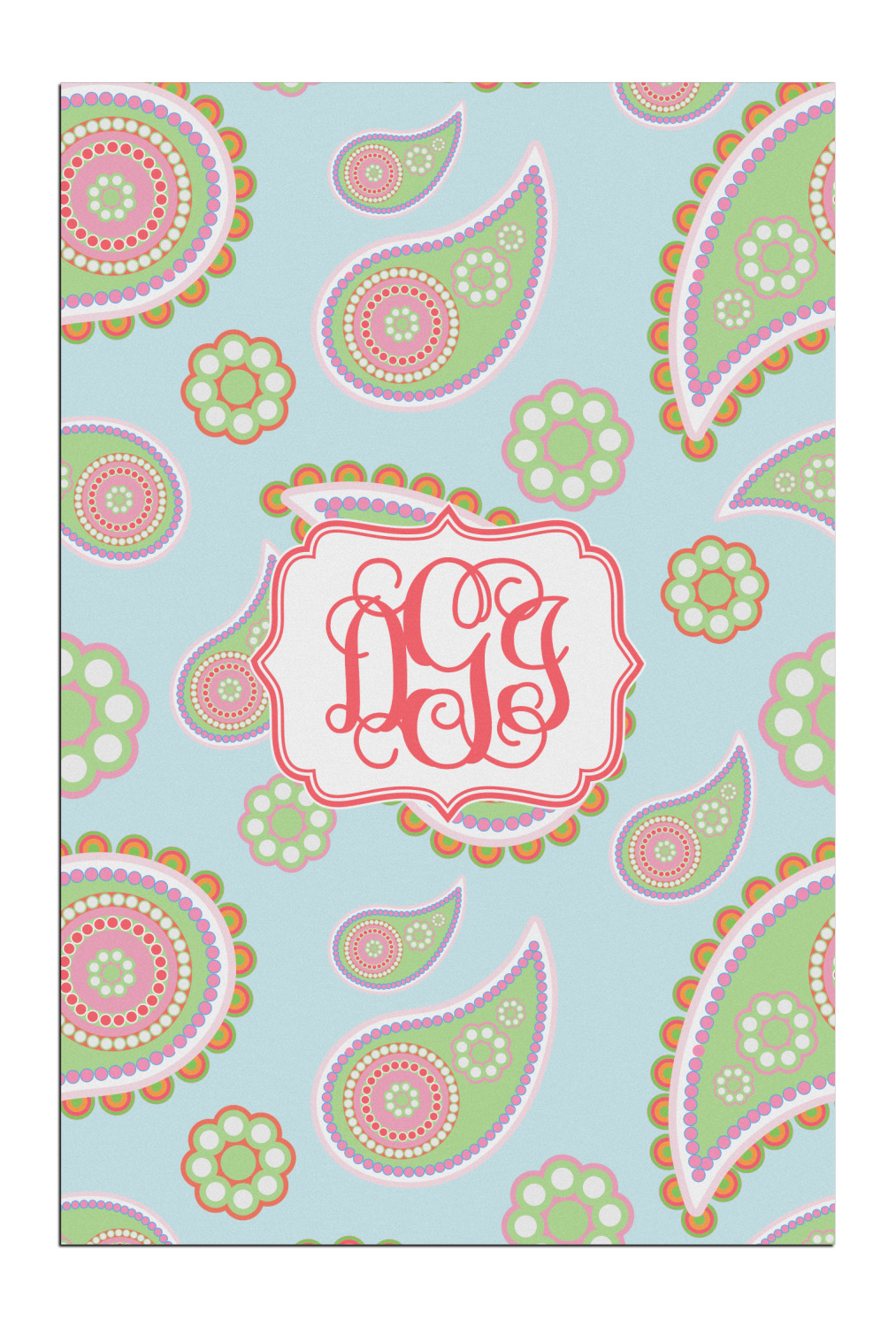 This design with paisley in green and coral on a blue background creates a nice balance between feminine and masculine colors.