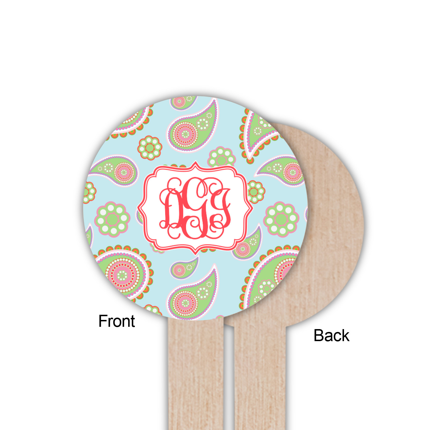 This design with paisley in green and coral on a blue background creates a nice balance between feminine and masculine colors.