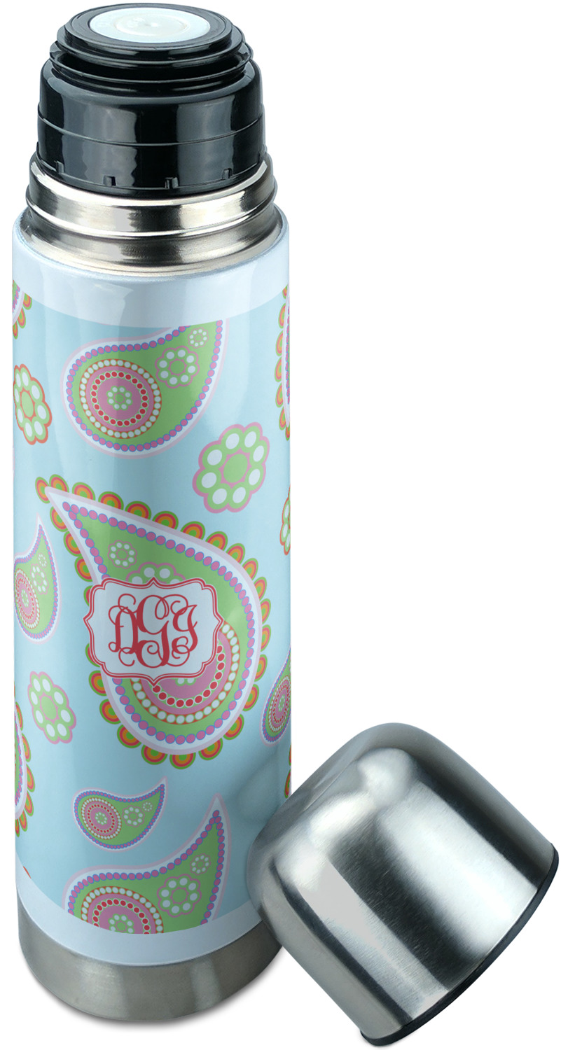 Manufactured from stainless steel, this thermos is built durably and double-walled insulated to preserve the temperature of your drink for hours. It also features a screw off lid that is made to also function as a small cup. Upon unscrewing this part of the thermos bottle, a pop-open, pour feature emerges. This feature allows you to slowly pour your beverage into your lid, ensuring a steady, controlled pour into your lid or other cup. With a capacity of 25 ounces, these large thermoses can hold several servings of your favorite beverage. Your customization is displayed all around the bottle with bright, vibrant color.