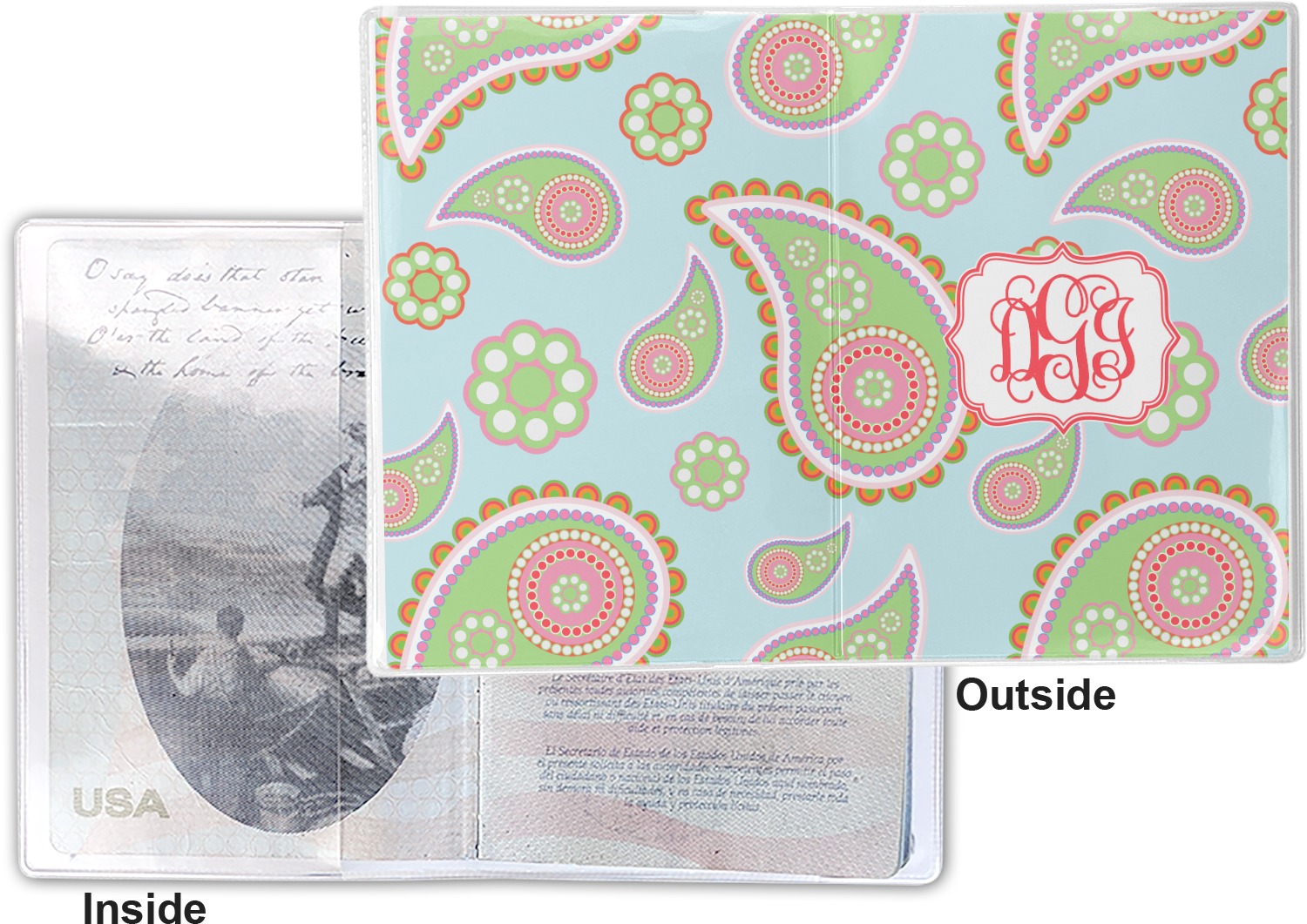 This cover is made of a sturdy clear vinyl with a personalized vinyl insert inside. There is a large and a small pocket on either side to hold the covers of your passport easily and firmly. The passport holder is approximately 7.5" x 5.25", the perfect size to snugly fit your passport. This slim cover is the perfect way to protect your passport without being one more bulky item you have to carry.