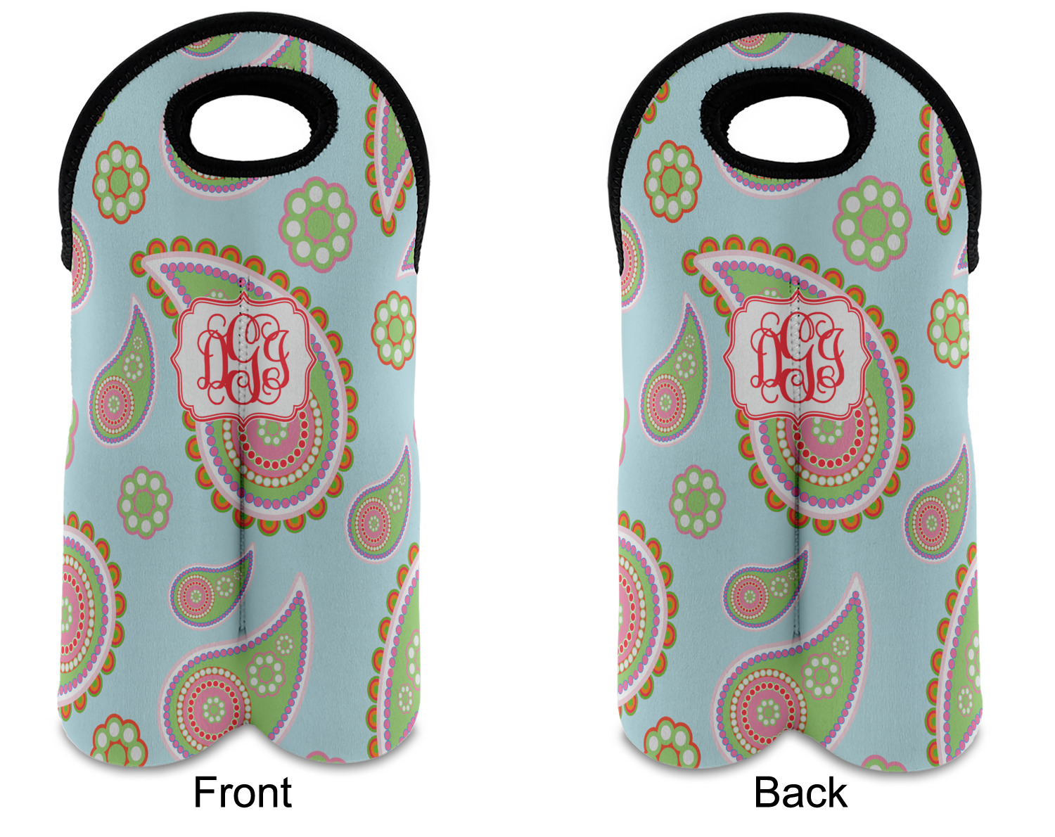 These tote bags are insulated to keep the bottles cold and have a stitched separation down the middle and double handles to keep the two bottles safe and secure during travels.