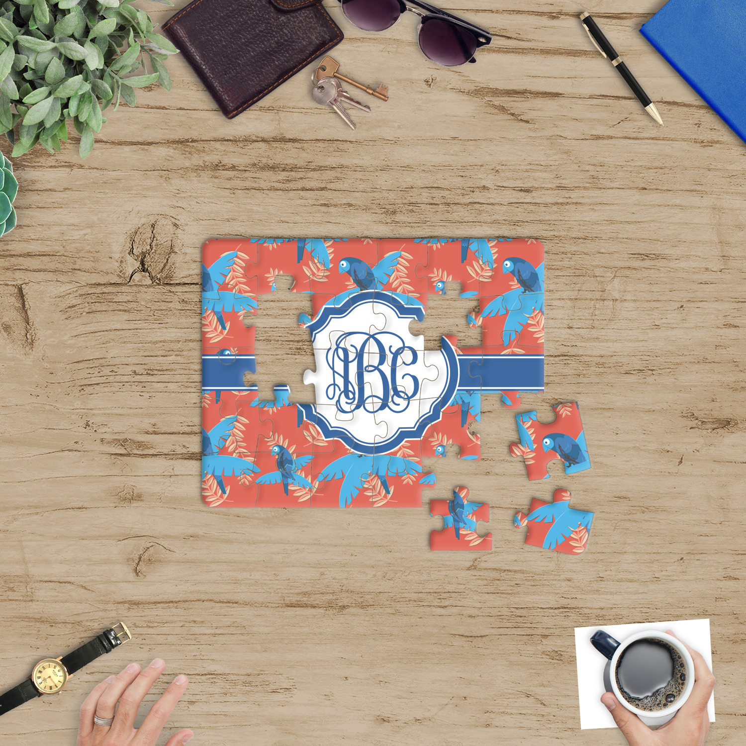 You can also upload your logo or art that you or your kids drew. To create more challenging jigsaw puzzles, you can create a pattern from with your logo or artwork. You can also add other elements such as text or personalization.