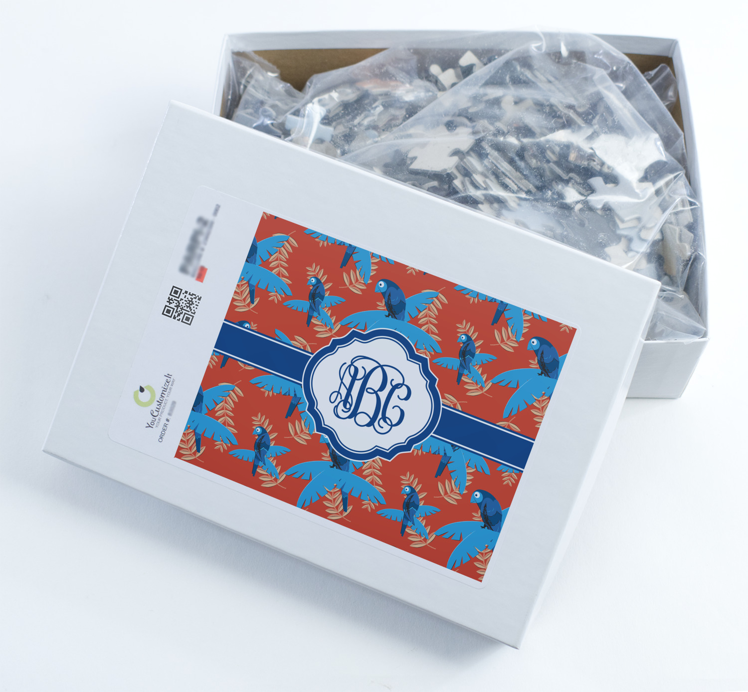 We print our puzzles on thick white chipboard in vibrant colors, then laminate the chipboard and die cut your puzzle. Your jigsaw puzzle is shipped to you in a box with the image of the puzzle on the box.