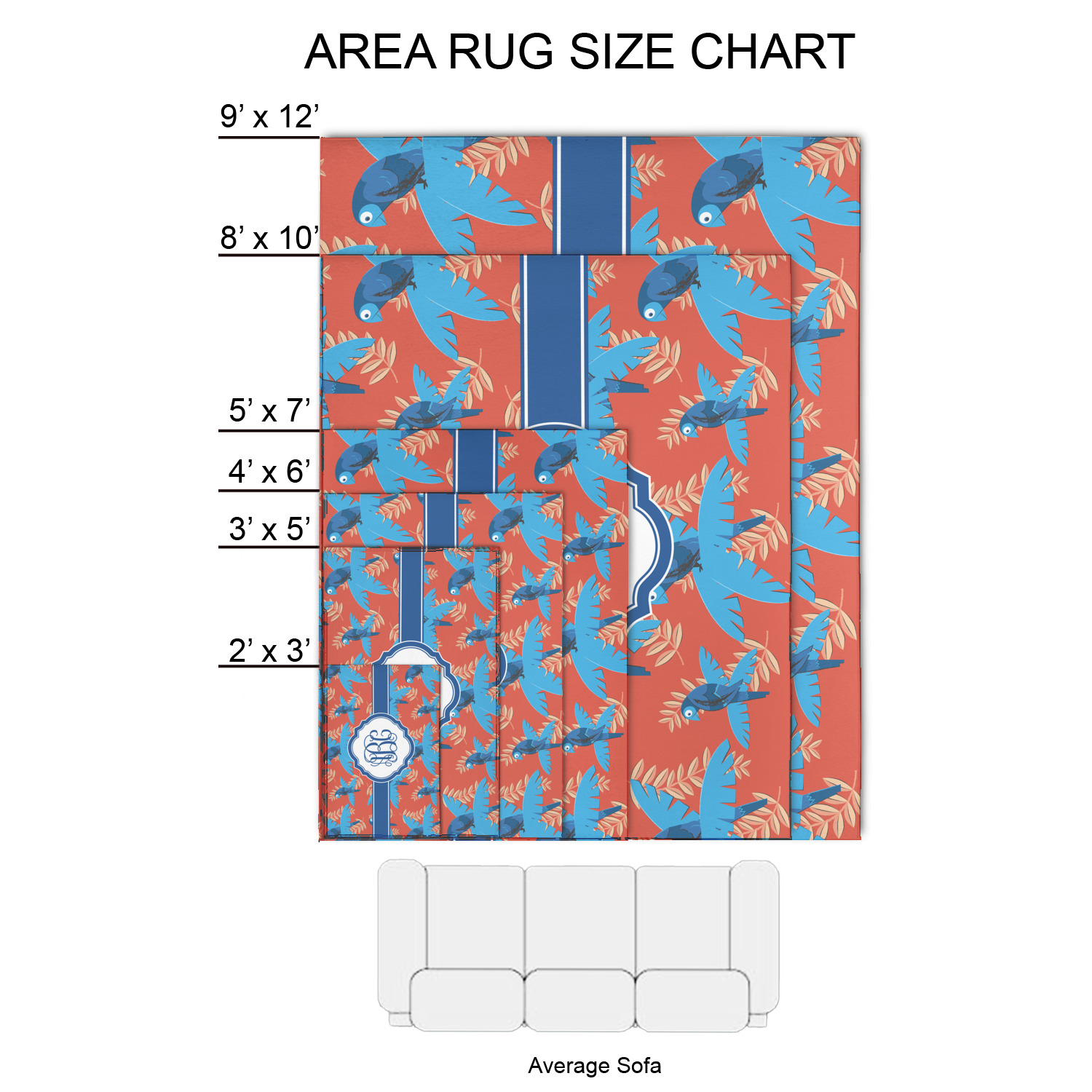 Our area rugs are available in multiple sizes; they are listed below: