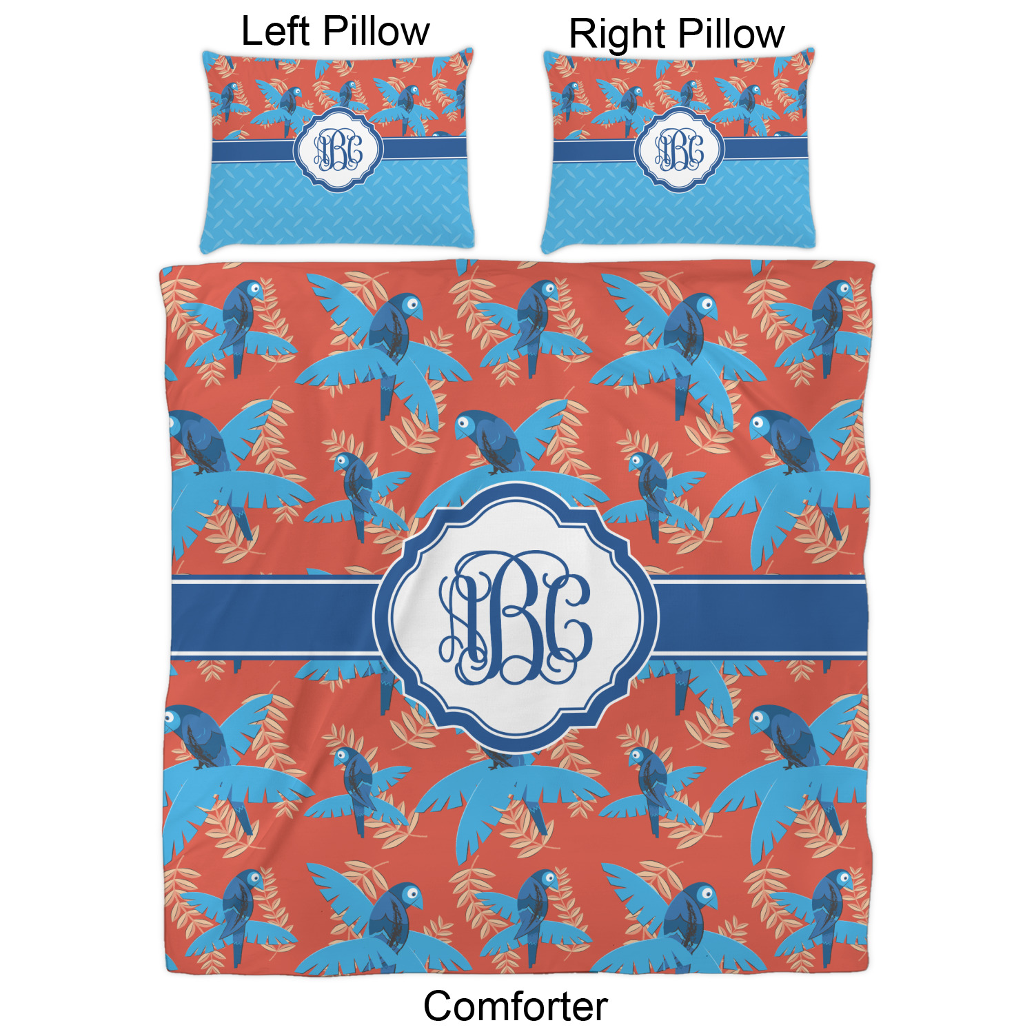 We have hundreds of different design templates for you to choose from Each design can be customized to your exact specifications. Not only can you customize the comforter, but you can also customize each pillow sham e.g. for a queen comforter set you have have Mr & Mrs pillow shams with the last name on comforter.