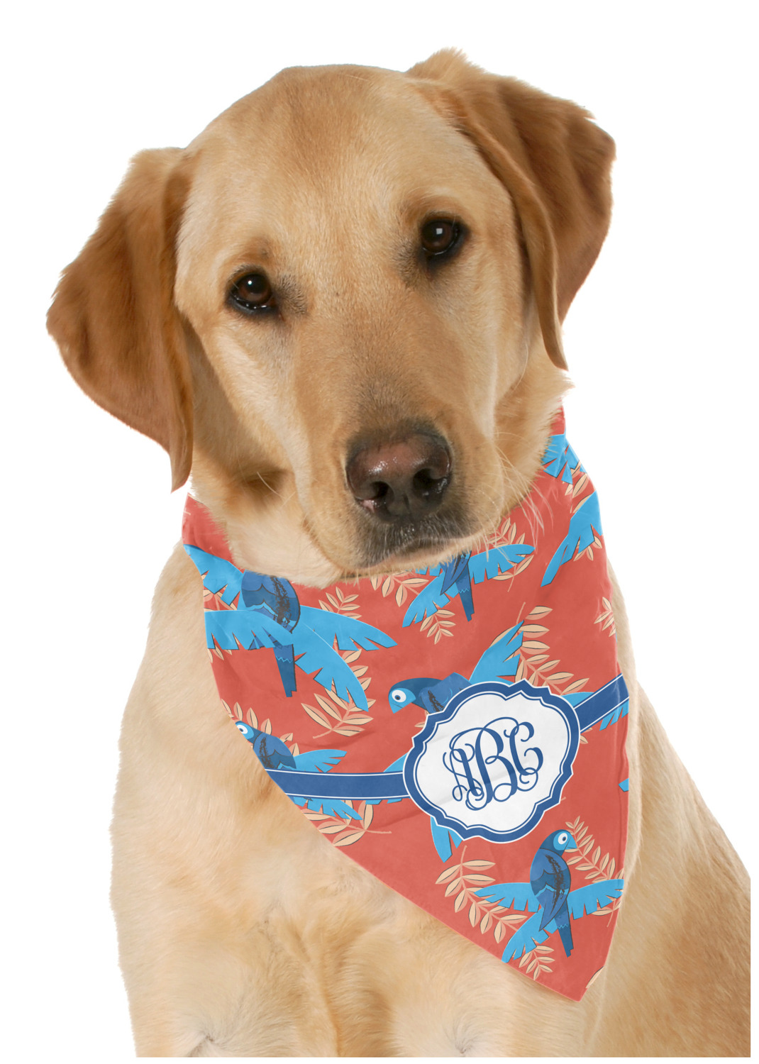 This beautiful pet bandana really is the perfect accessory. It is made from a silky feeling polyester and measures at approximately 23" x 23". Your personalization will be printed on a diagonal, so that you are able to read the personalization when folded into a triangle. This bandana fits best on large dogs, but can be folded smaller if there is no personalized text to fit smaller pets.