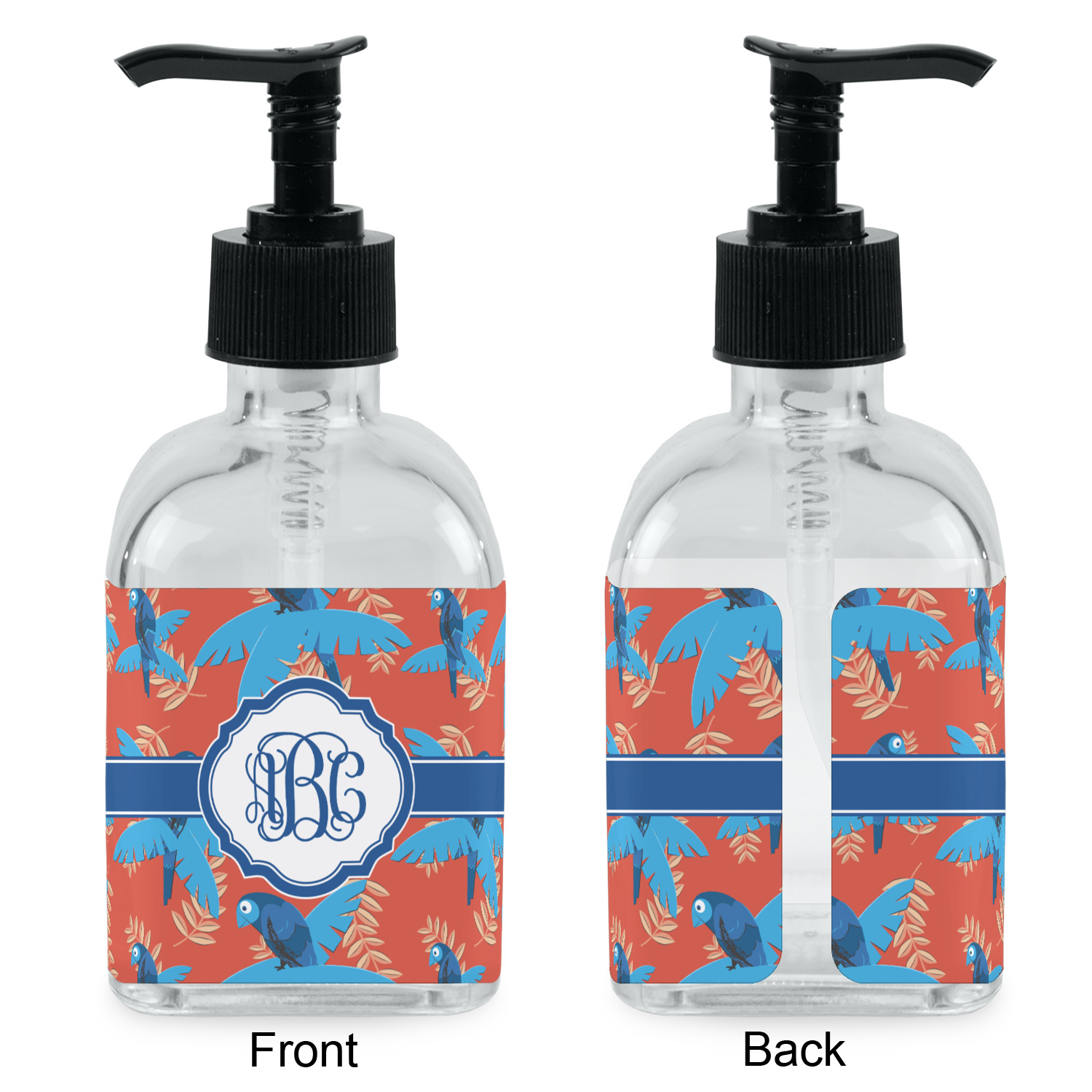 Crafted from a high-quality glass, these soap dispensers and lotion dispensers are durable and robust, while still looking elegant. They are sold with black pumps. Each soap dispenser pump measures at 6.5 by 2.25 inches. On these soap pumps, we display your customized design on a personalized vinyl adhesive on three sides. That way, you can judge how much liquid is in the bottles from the back.