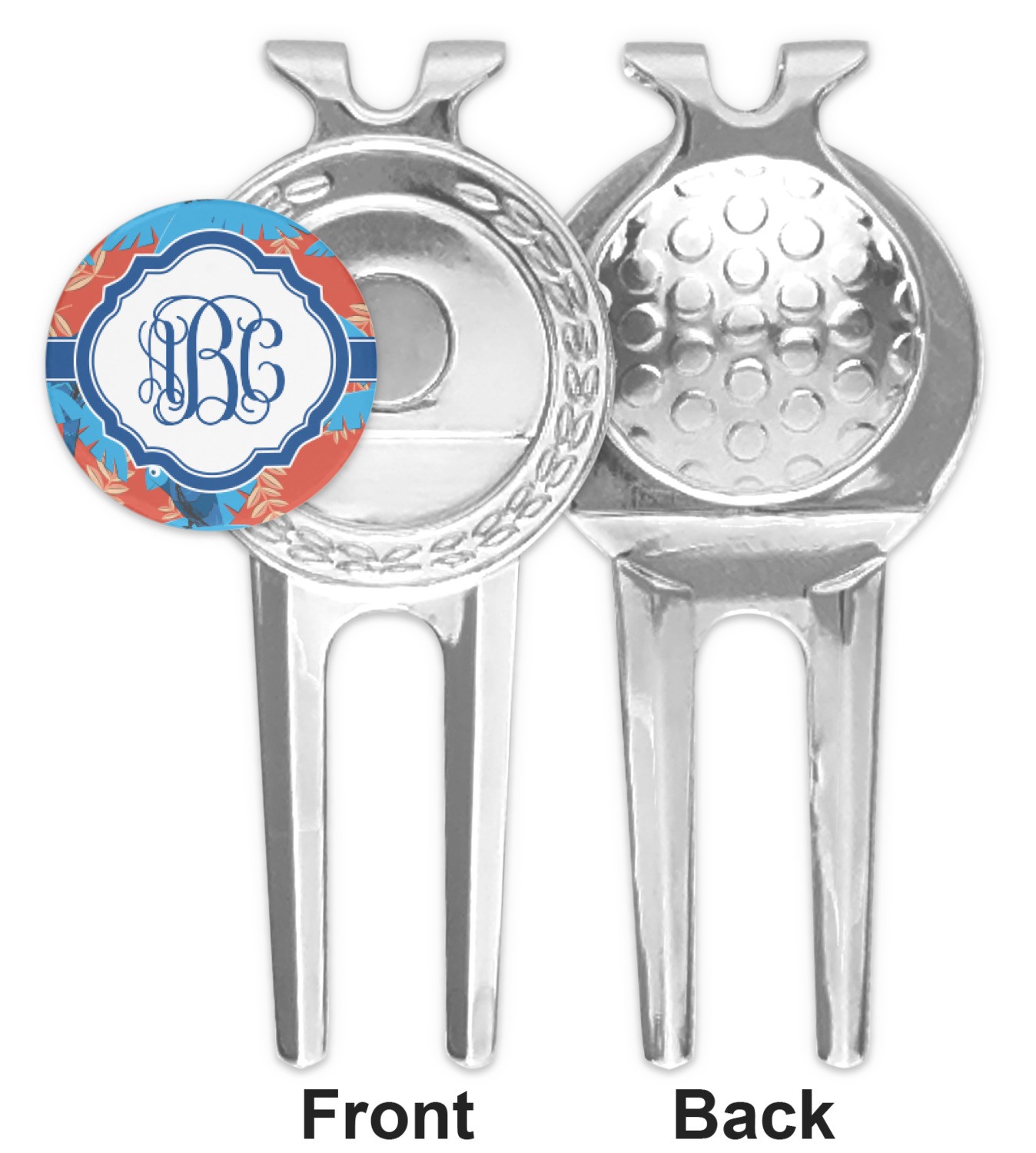 This great little stainless steel divot tool is two-pronged and is approximately 3.25" x 1.5". The two prongs make is a breeze to fix any divots. There is a golf ball shaped place on the back of your tool where your thumb can sit in order to do this easily.