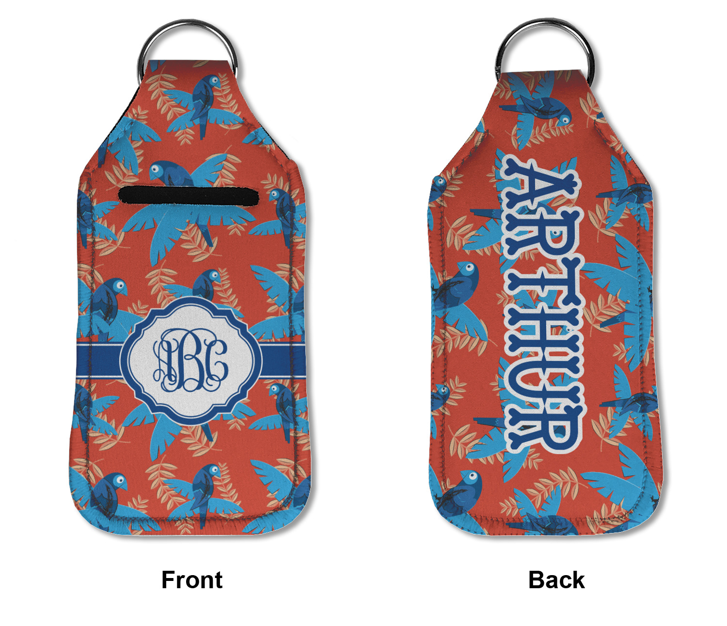 Each hand sanitizer holder comes with its own empty travel-sized, refillable hand sanitizer sure to fit snug in your customized sanitizer case! Our hand sanitizer cases are a durable, yet soft neoprene material sure to last any daily activities or travel agenda. Customize and personalize a hand sanitizer bottle holder with one of our two sizes - small (4.25" x 2.25") or large (5.5" x 2.5"). Each travel sanitizer holder comes with a keyring for attachment on bags, keys, or more!