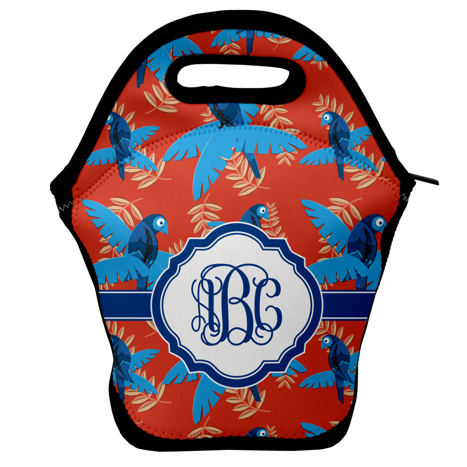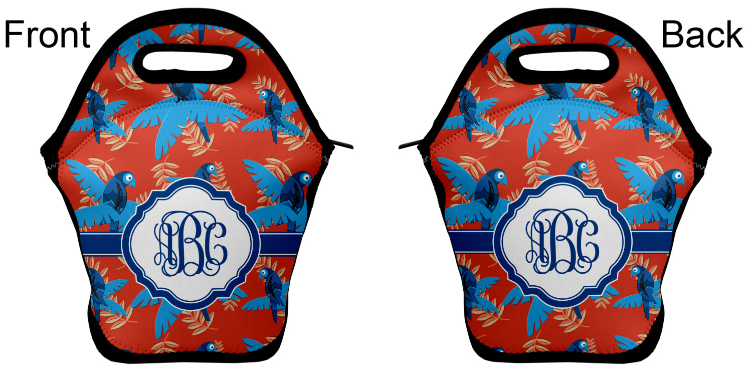 Our personalized lunch bags are made from a strong neoprene, and secure with a zipper closure that lines the top of the bag.The edges of the neoprene are sewn together with a heavy duty stitch, adding to the durability of the bag. The is accompanied by a reinforced handle at its top, for the easy transport of your lunch. We display your personalization across both the front and back of this neoprene lunch bag, while the remaining sides are a sleek black in color. Each bag measures at 13.5 inches tall, and 11.5 inches wide.