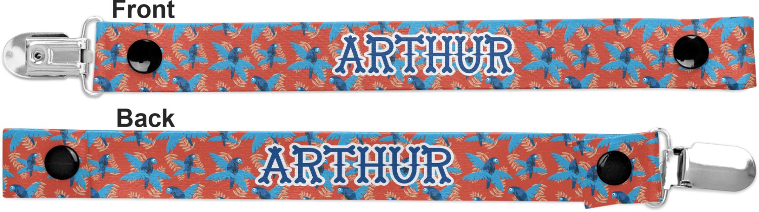 This personalized pacifier clip is the ideal size and measures at approximately 7.5 inches in length, when either end is snapped closed. On one end, you'll find a snap button. This button of your baby's pacifier holder is what can be attached to their pacifier to hold is securely in place. Simply open the snap, slip it through the pacifier opening, and snap it back into place. On the opposite end of this baby pacifier holder, you'll find a metal clip that can secure to a baby's collar or sleeve. This clip ensures that the strap stays in place, and that your baby's pacifier is always on hand.