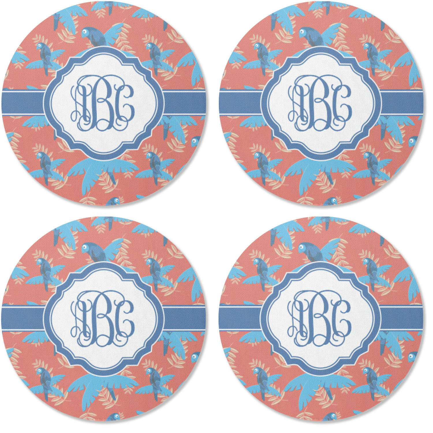 These drink coasters have a smooth, polyester top and a textured, rubber backing on its bottom. The non-slip rubber backing underneath works to keep any spills at bay. At 4 by 4 by 0.25 inches thick, these custom coasters are a suitable size for most drinkware. Your personalization is displayed atop the face of the cup coaster. We sell these rubber coasters in two different shapes: square and round. You can buy each shape as singulars or as a set of 4.