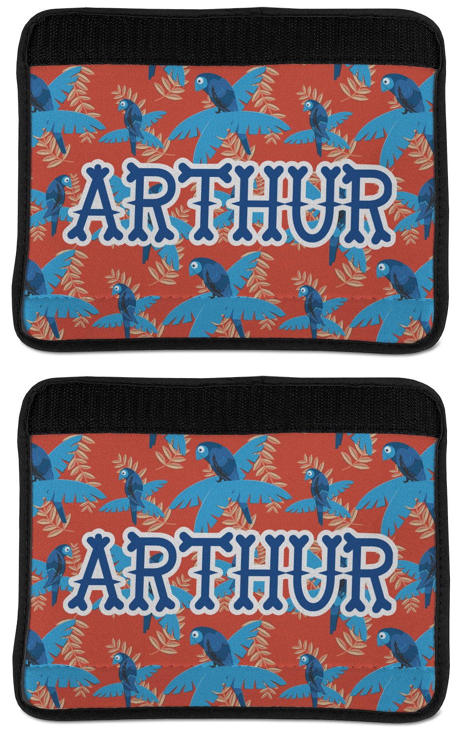 Made from neoprene, our seat belt strap covers wrap around the belt itself and have a Velcro tab for easy attachment and closure. The belt's edges are trimmed with a black polyester for a secure finish. Each cover is 9.5 by 7 inches when open and 9.5 by 2.5 inches when closed. We print your personalized design on the face of the seat belt pad.