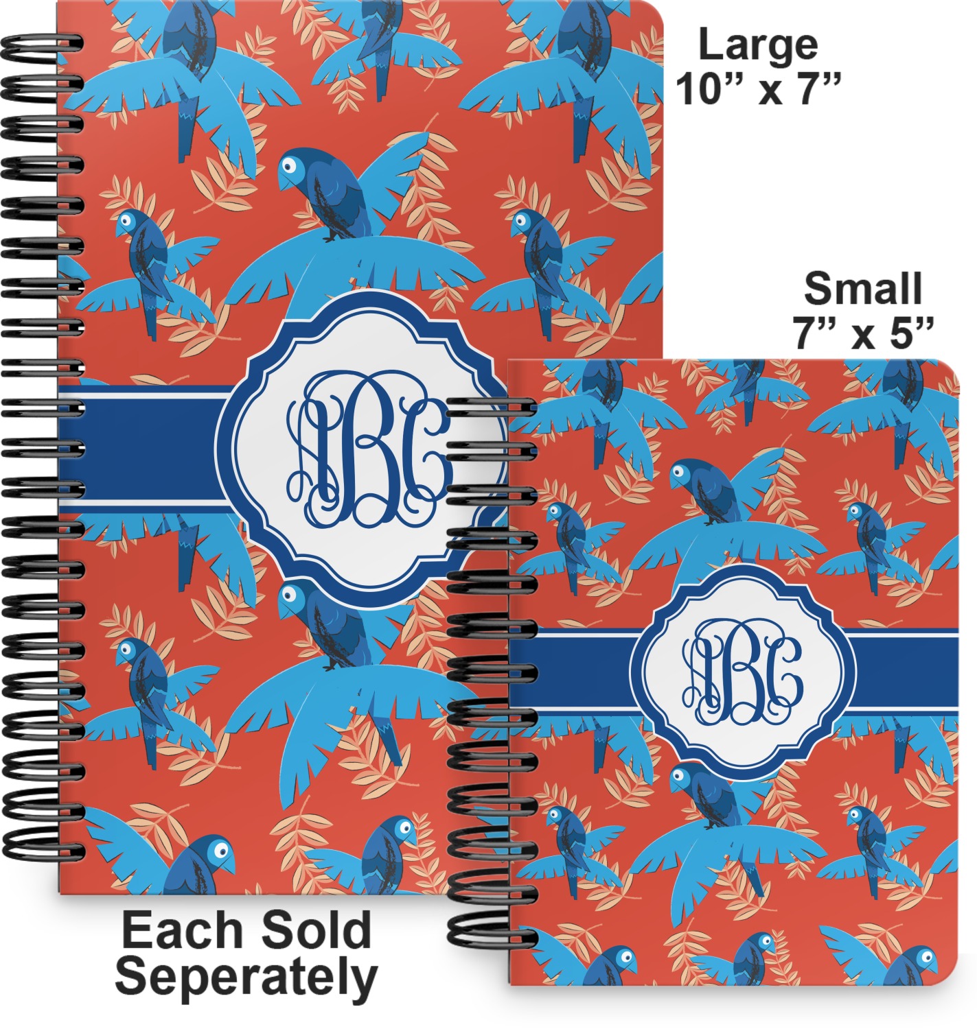 This spiral journal is available in two sizes. The first size is more suitable for a tote or purse and measures at 7" x 5". The second option is a bit larger, at 10" x 7", and is a better fit for a briefcase or backpack.
