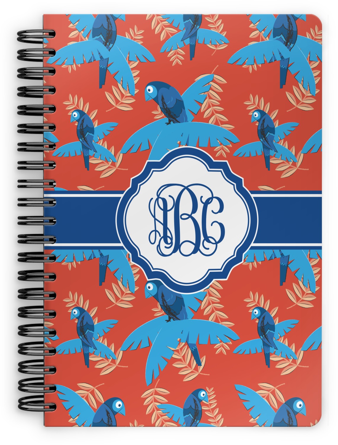 This spiral notebook includes 75 sheets of thick, ruled paper. The front and back of this custom notebook is made of a robust, laminate, plastic covering. We print your personalization on these two panels, underneath a glossy finish, which emphasizes the colors of your design. The two panels and the sheets of paper are held together by a sturdy, black coil. The paper within your bound notebook is perforated for easy, clean tearing.