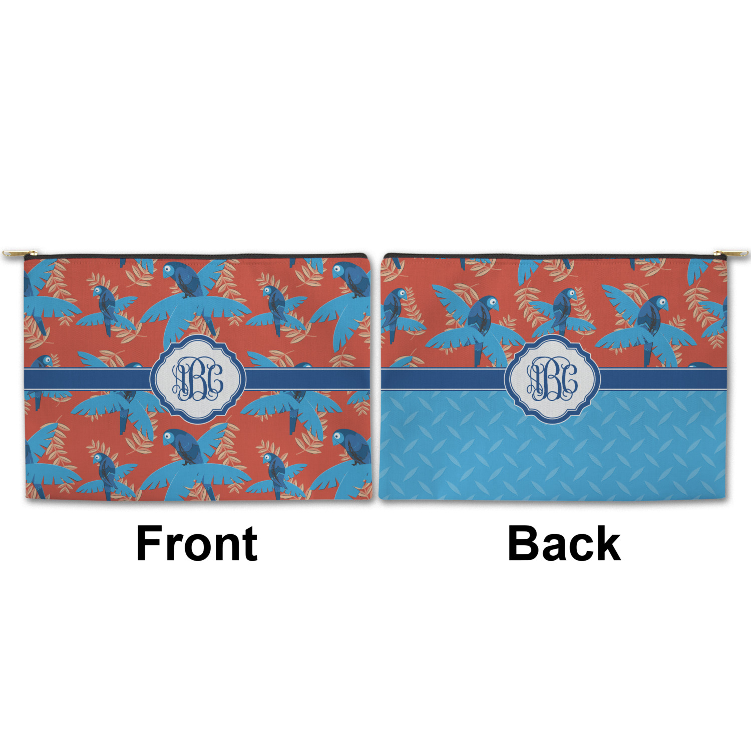 You can design both the front and the back of the pouch - same design, two complementary designs or two totally different designs - the choice is yours! We offer many different personalization styles i.e. name, name & initial, monograms - so the choice to personalize is also yours.