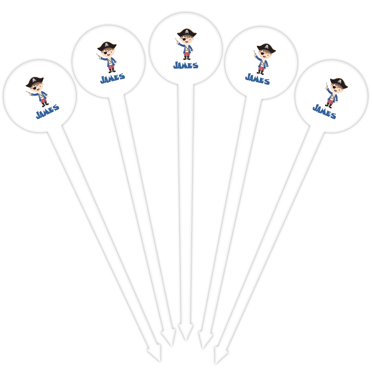 Pirate Boy Designs for 4" Round Plastic Food Picks - White - Single-Sided