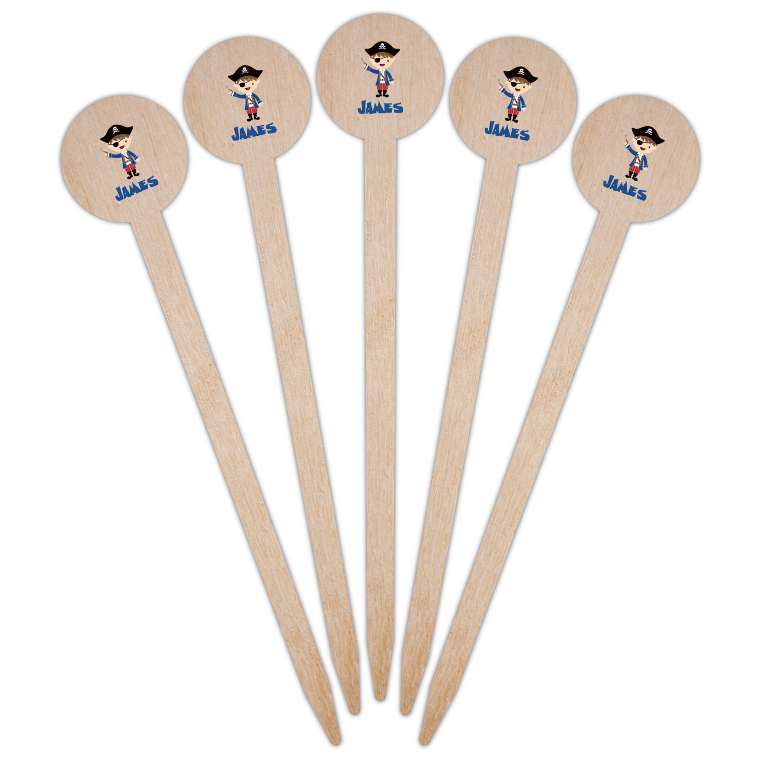 Pirate Boy Designs for 6" Round Wooden Food Picks - Single-Sided