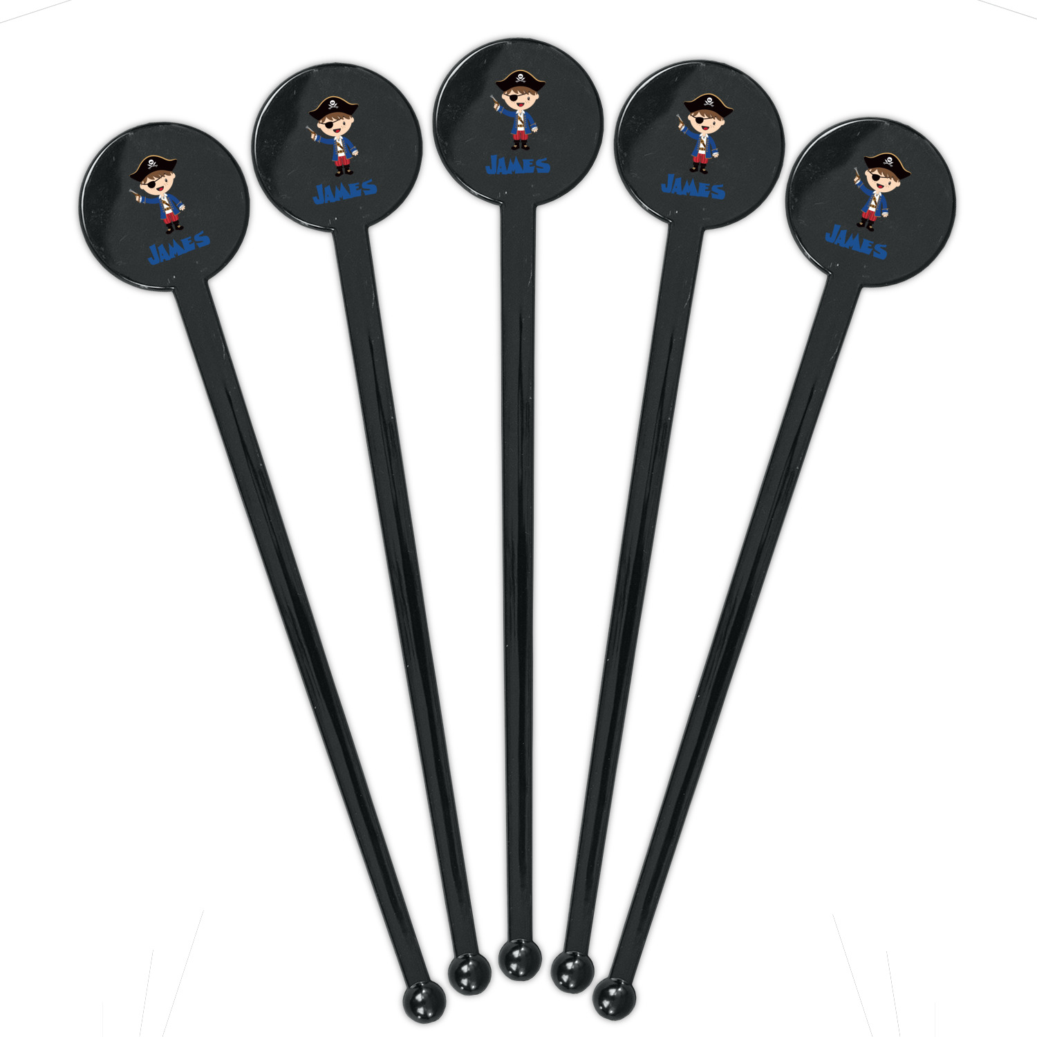Pirate Boy Designs for 7" Round Plastic Stir Sticks - Black - Single-Sided