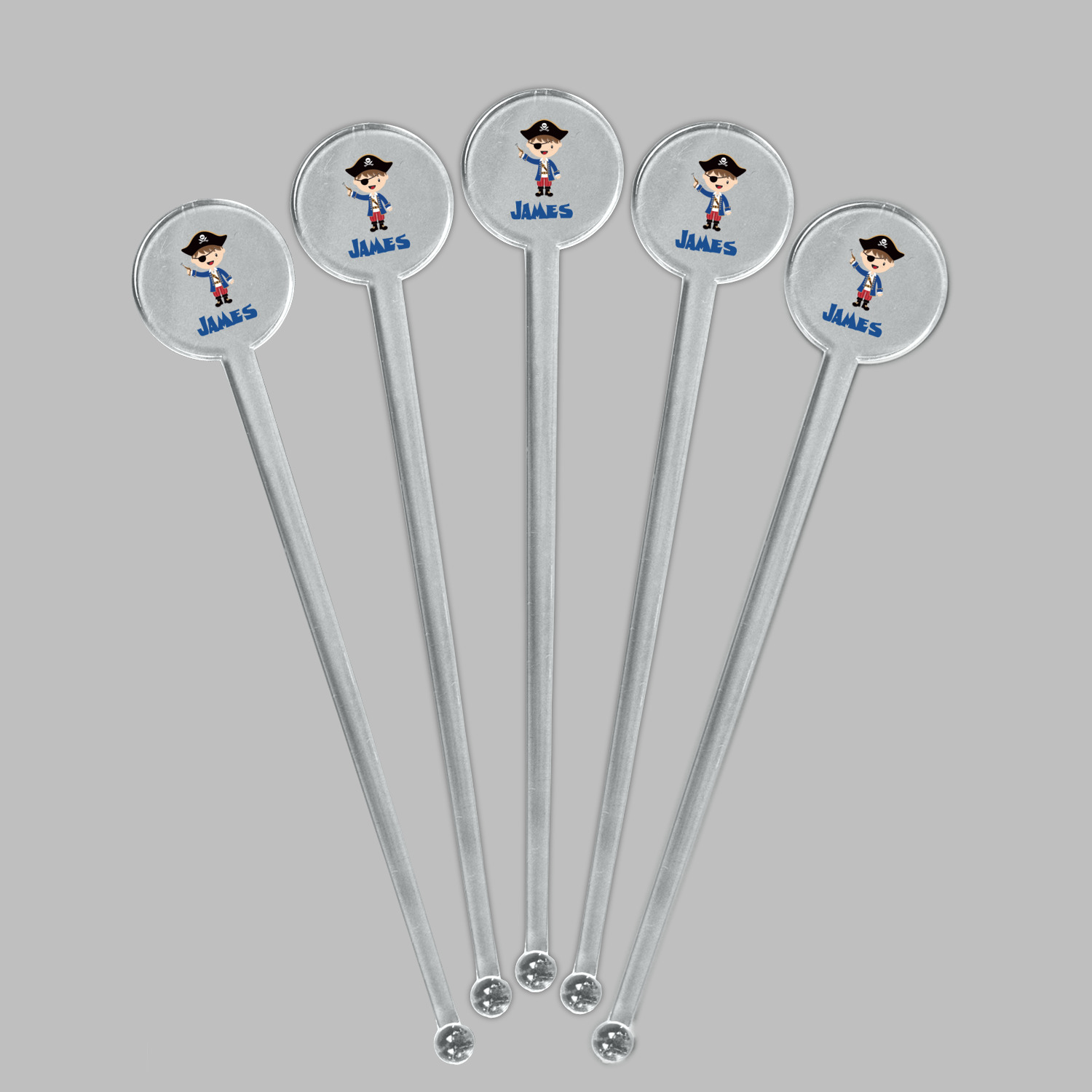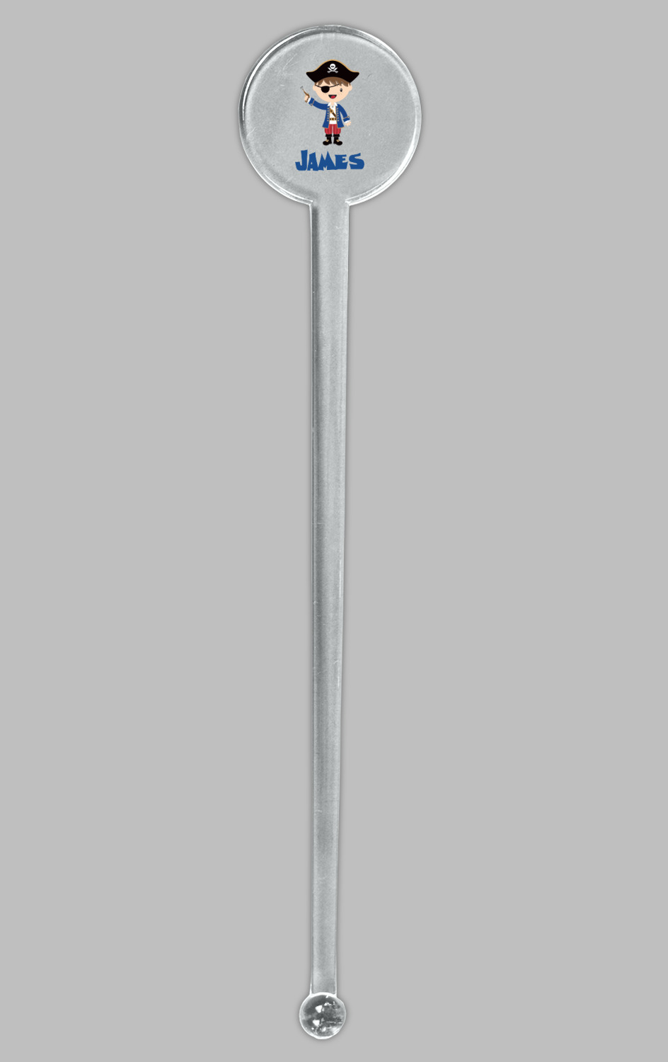 Pirate Boy Designs for 7" Round Plastic Stir Sticks - Clear
