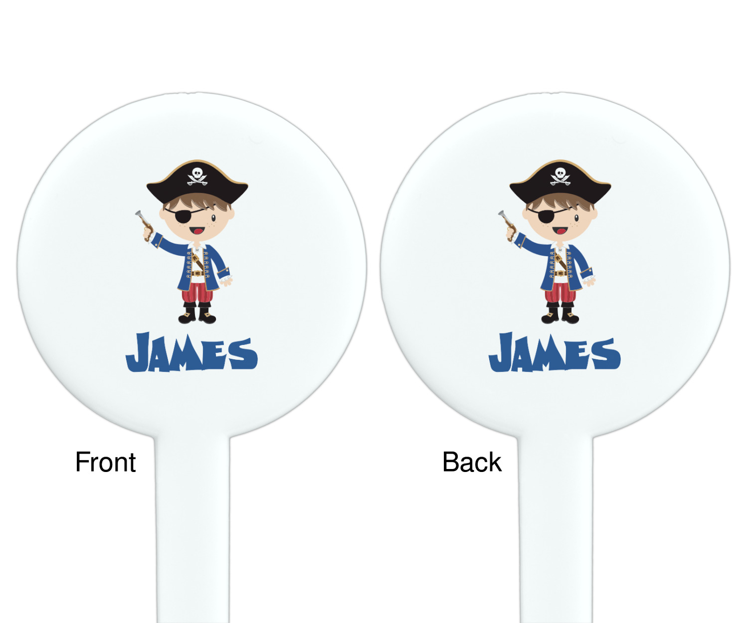 Pirate Boy Designs for 7" Round Plastic Stir Sticks - White - Double-Sided