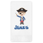 A wide band of red, trimmed in white highlight the pirate boy in the circle label. Add your personalization in the label to complete the look.