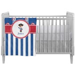 This patriotic pirate brings back the days of Paul Revere. The traditional black and white skull and crossbones are adorned with red and white polka dot dew rags and are highlighted on a backdrop of patriotic blue. The coordinating bottom pattern of patriotic blue and white stripes ties the entire design together.