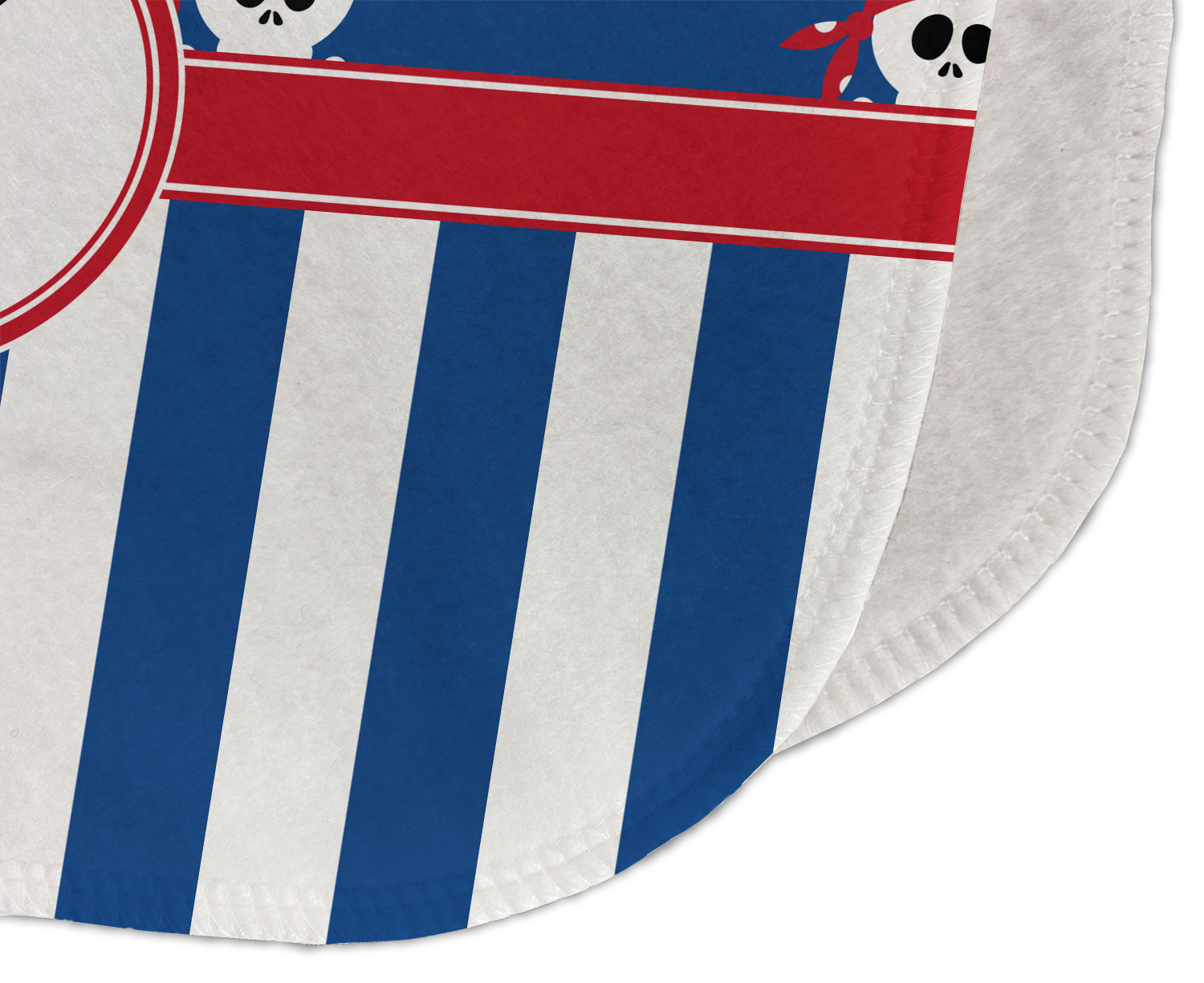 A wide band of red, trimmed in white highlight the pirate boy in the circle label. Add your personalization in the label to complete the look.