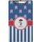 This patriotic pirate brings back the days of Paul Revere. The traditional black and white skull and crossbones are adorned with red and white polka dot dew rags and are highlighted on a backdrop of patriotic blue. The coordinating bottom pattern of patriotic blue and white stripes ties the entire design together.