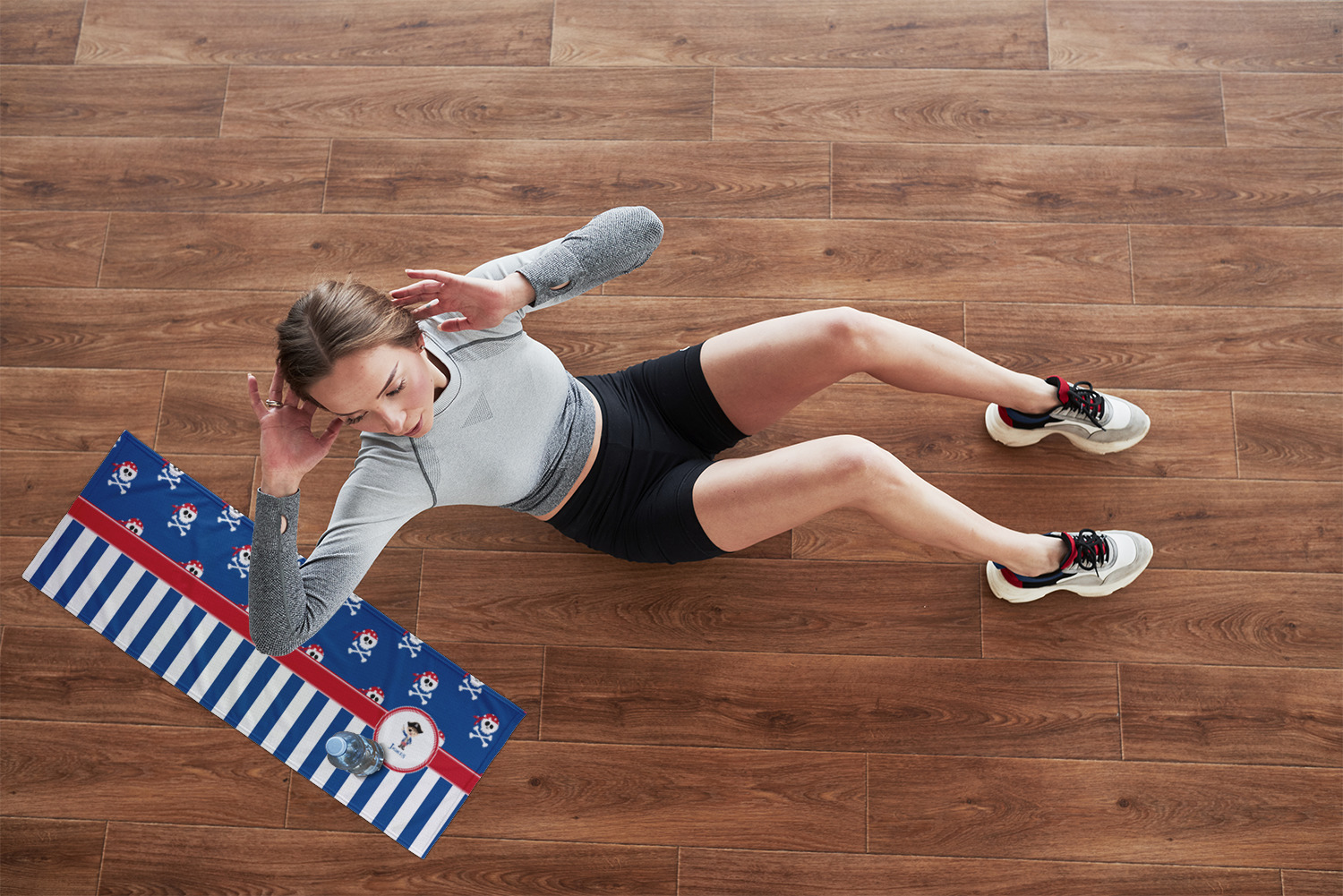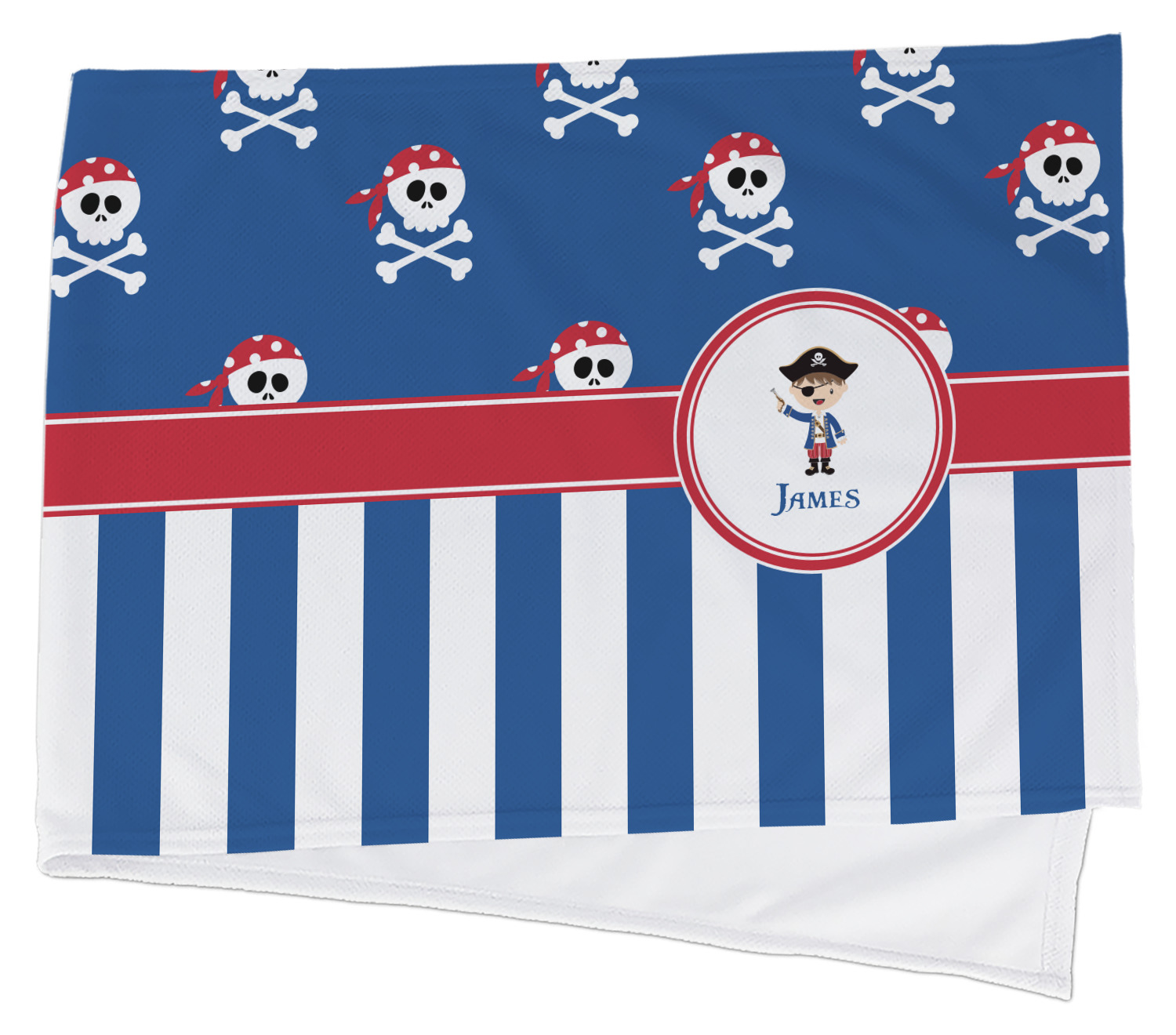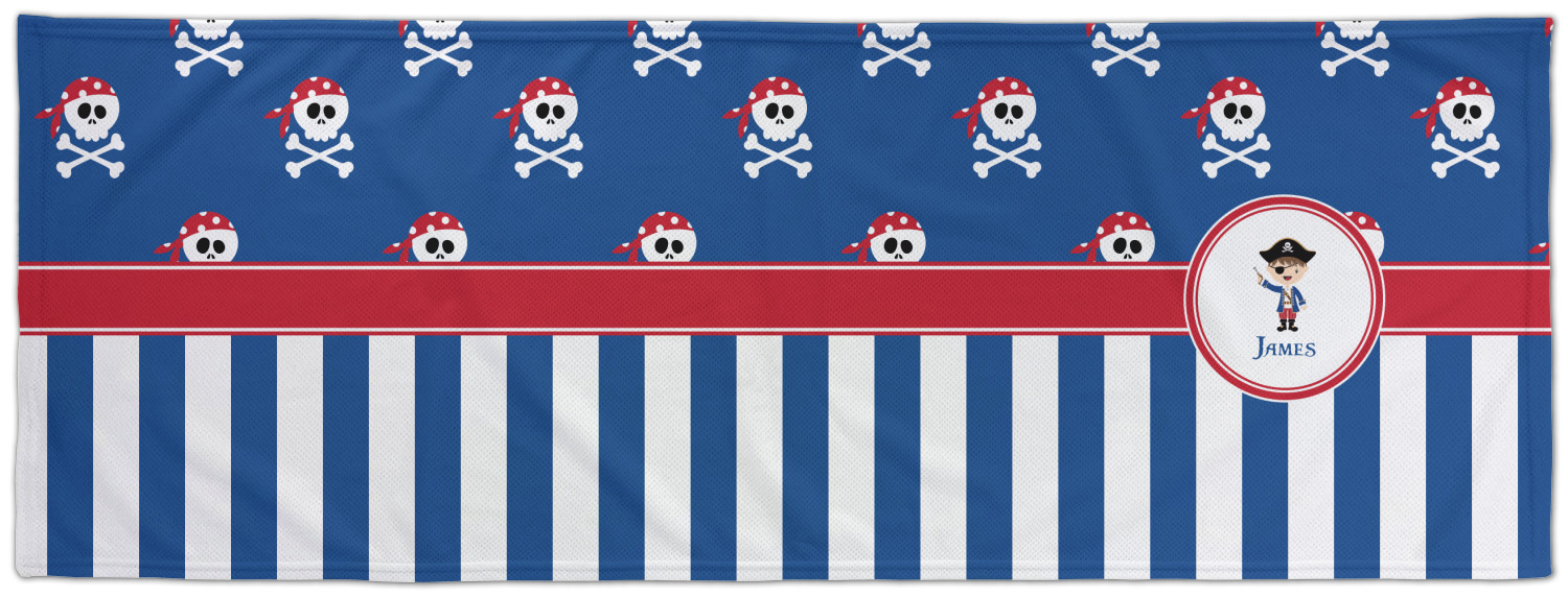 A wide band of red, trimmed in white highlight the pirate boy in the circle label. Add your personalization in the label to complete the look.