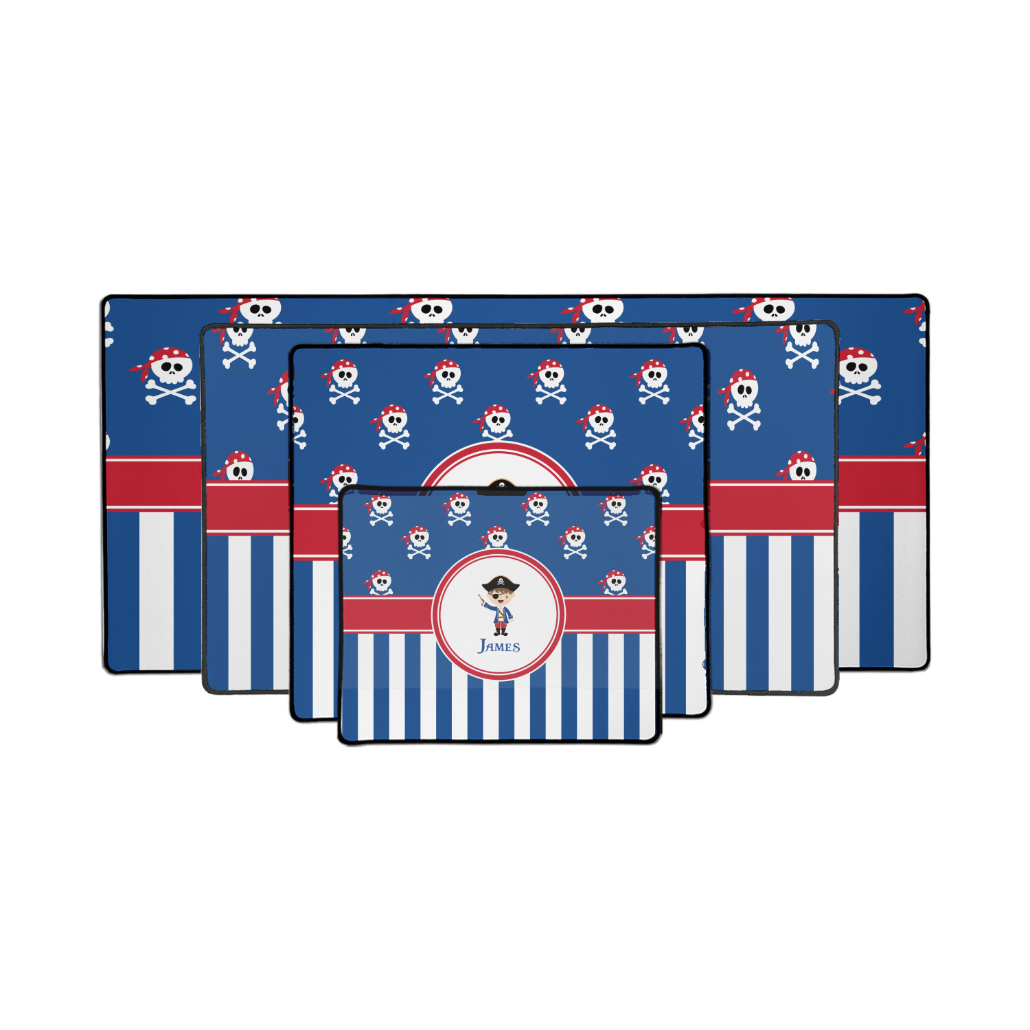 A wide band of red, trimmed in white highlight the pirate boy in the circle label. Add your personalization in the label to complete the look.