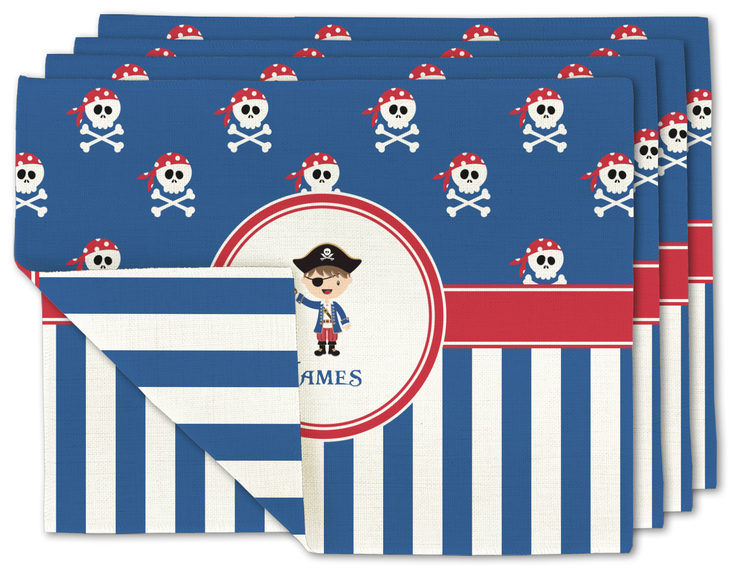 A wide band of red, trimmed in white highlight the pirate boy in the circle label. Add your personalization in the label to complete the look.